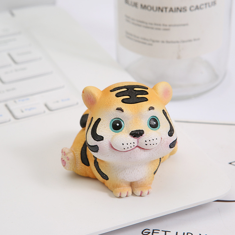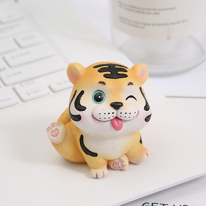 호랑이 해 장식 선물, 호랑이 장식품, 장난스럽고 귀여운 호랑이 수지 공예품, 사무실 데스크탑 자동차 장식 용품