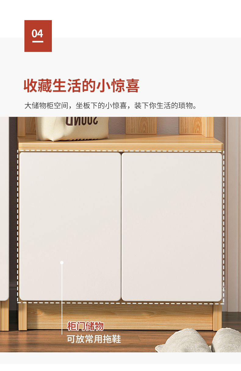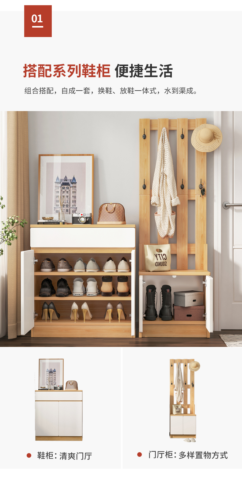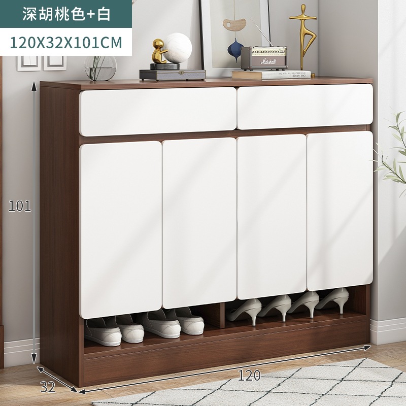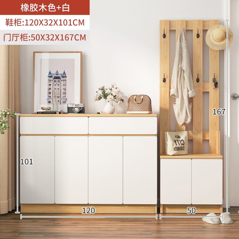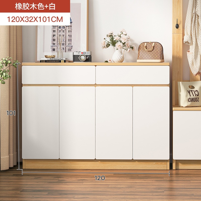 • [단일 신발 캐비닛] 고무 나무 색상 + 따뜻한 흰색 문 120CM