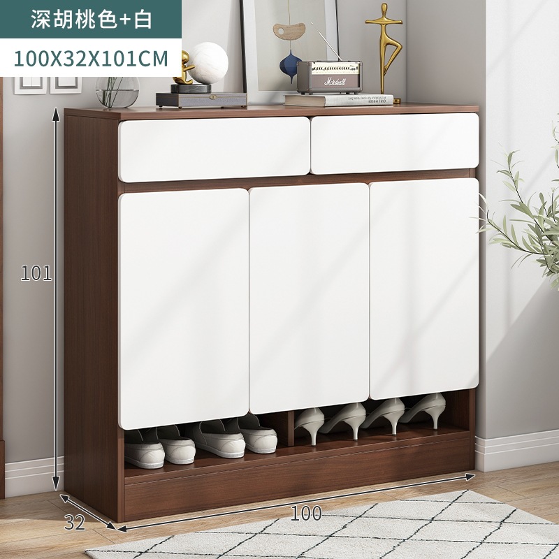 • [퍼지 신발 캐비닛] 검은 호두 + 따뜻한 흰색 문 100 × 32 × 101CM