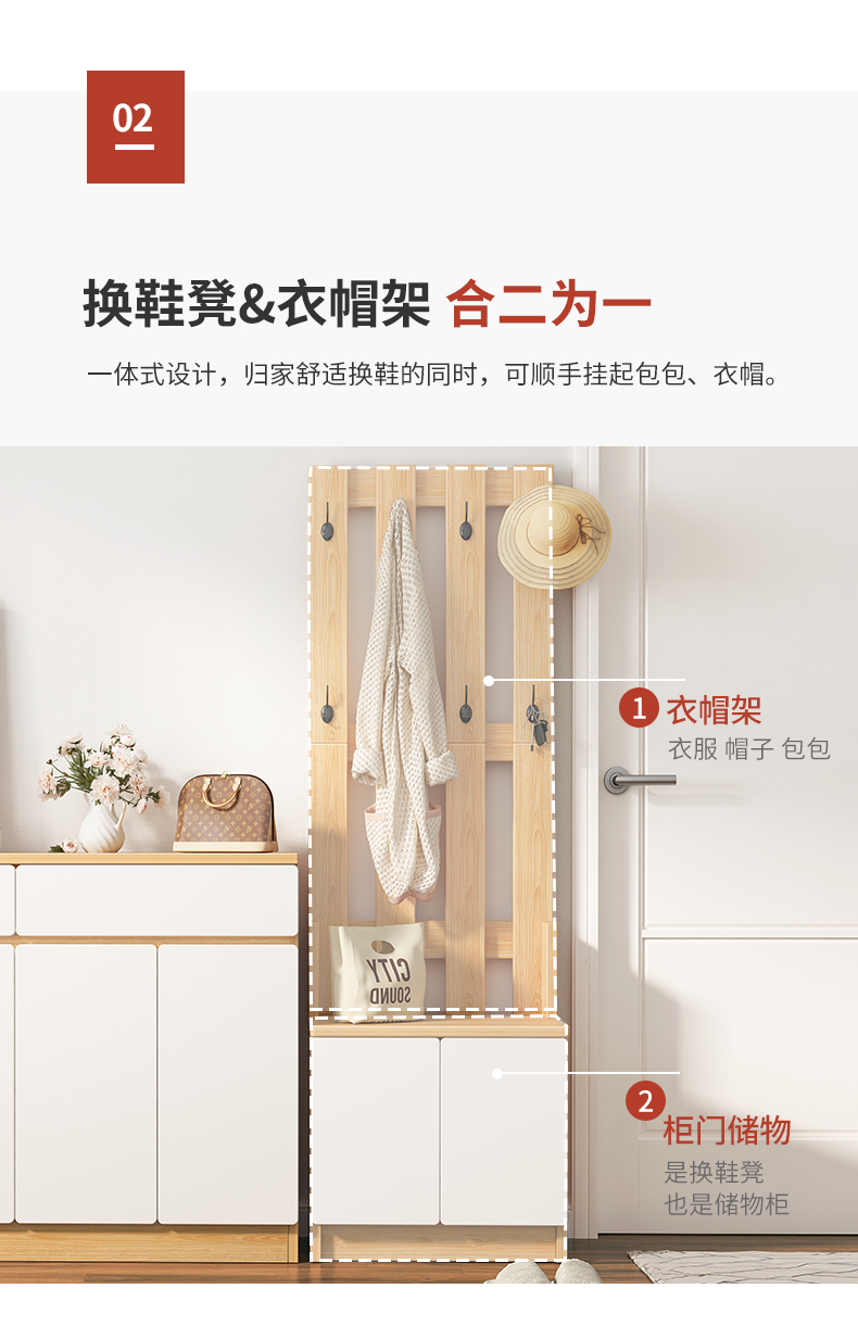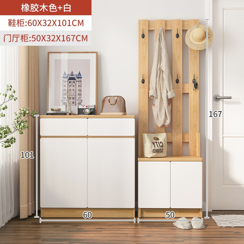 • 조합 고무 나무 색상 + 흰색 [총 길이 110C M 신발 캐비닛 + 옷걸이 조합]