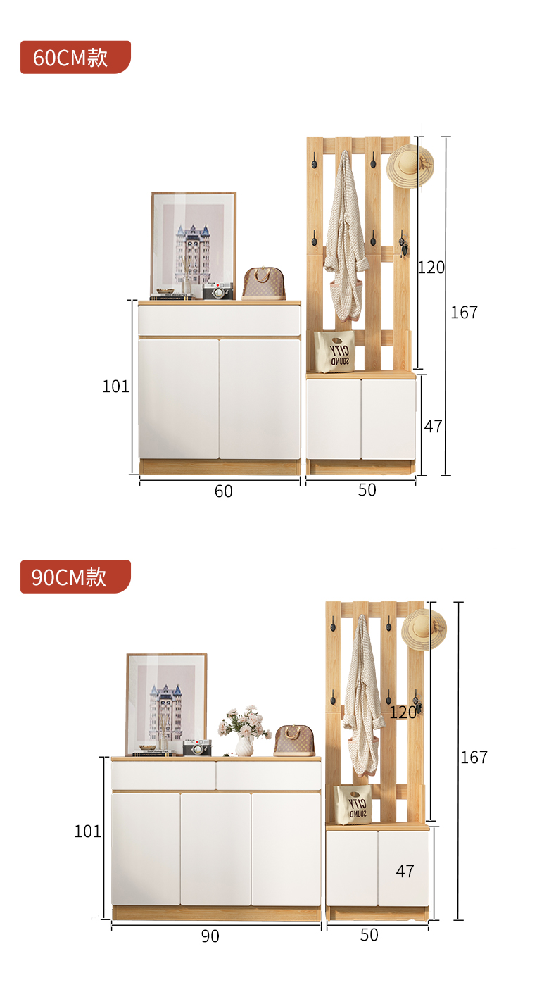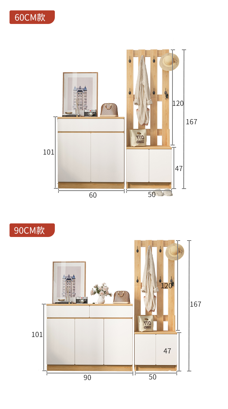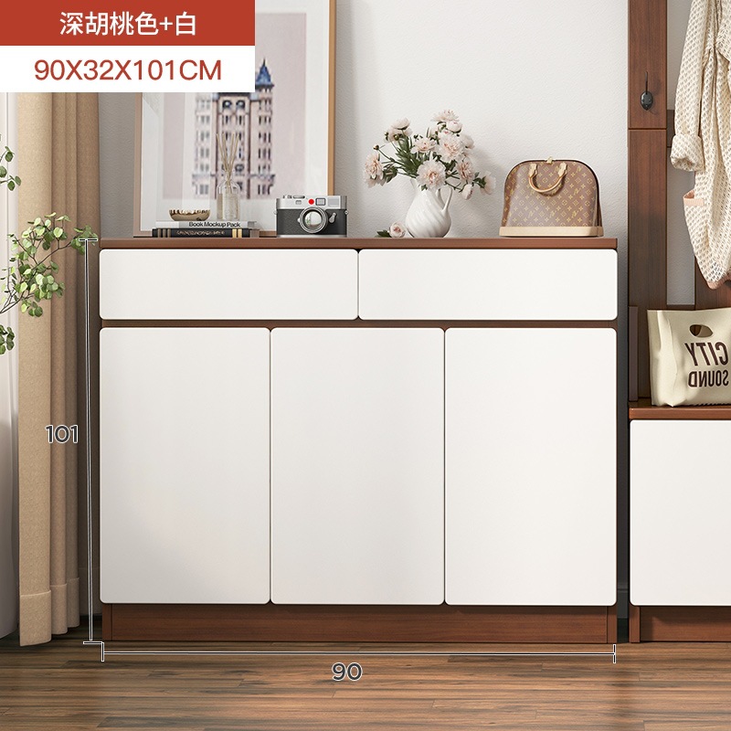 • [단일 신발 캐비닛] 고무 나무 색상 + 따뜻한 흰색 문 90CM