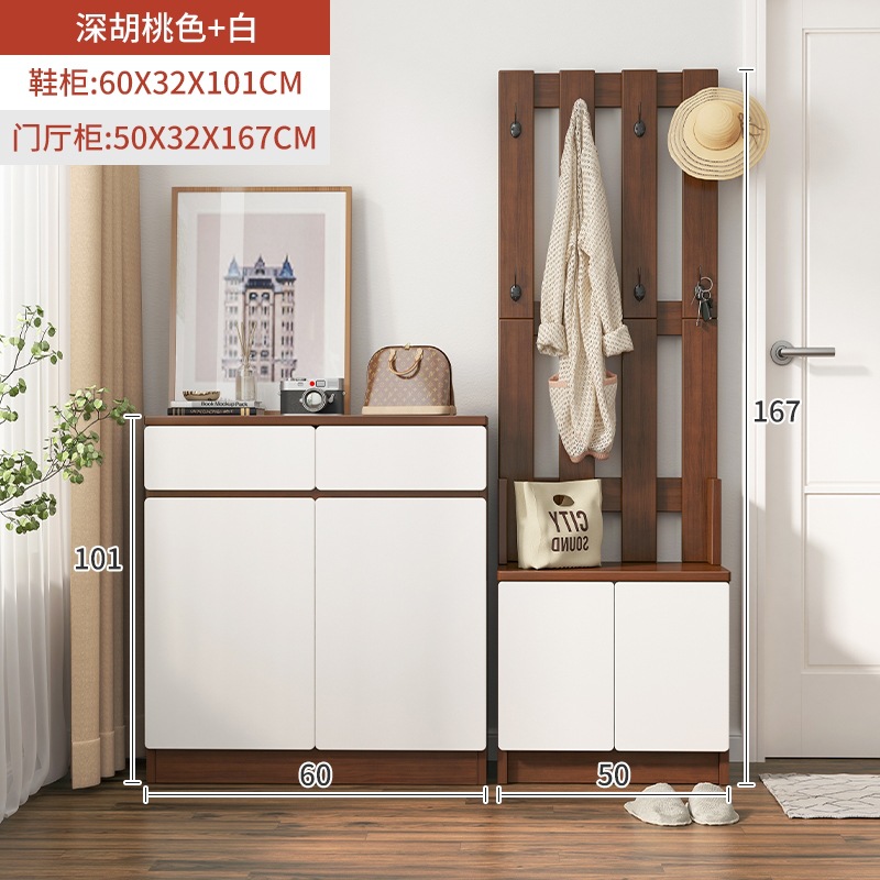 • 조합 블랙 호두 + 화이트 [총 길이 170C M 신발 캐비닛 + 행거 조합]