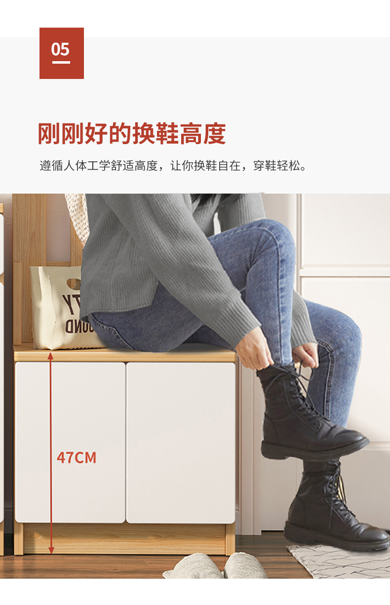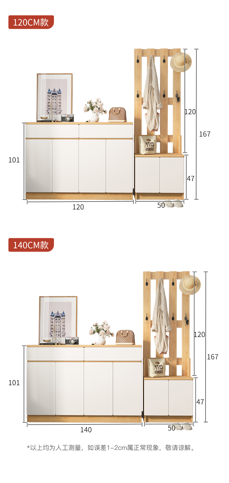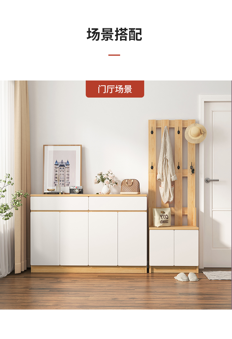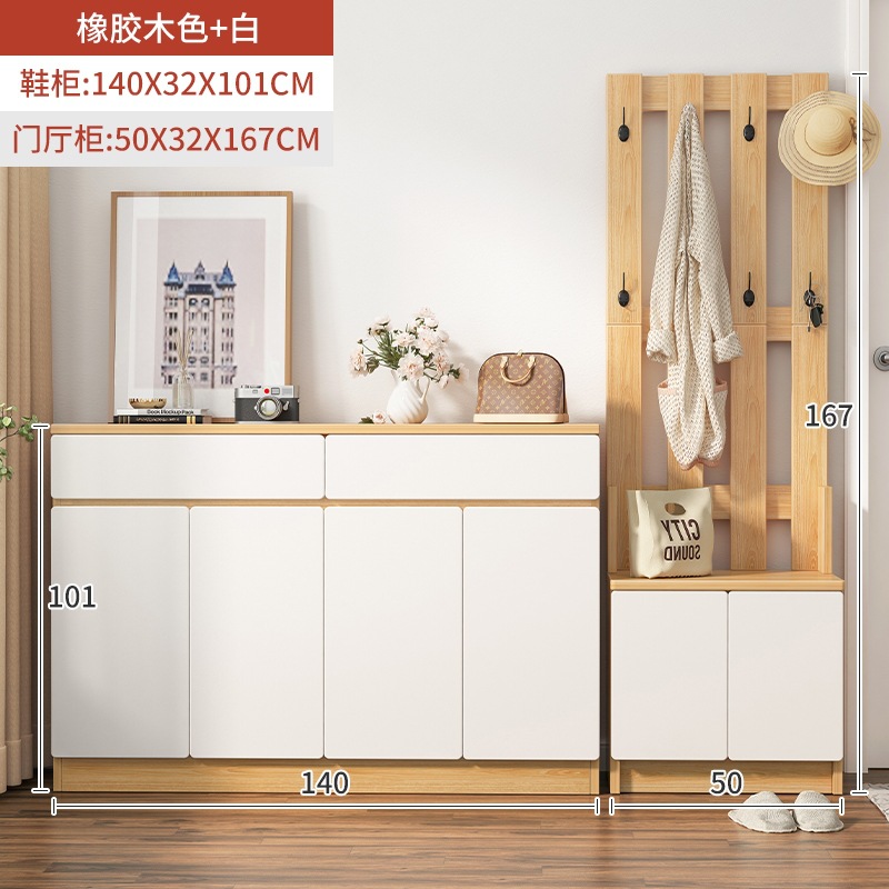 • [단일 신발 캐비닛] 고무 나무 색상 + 따뜻한 흰색 문 140CM