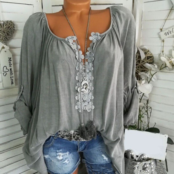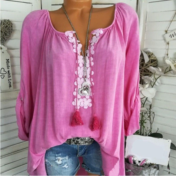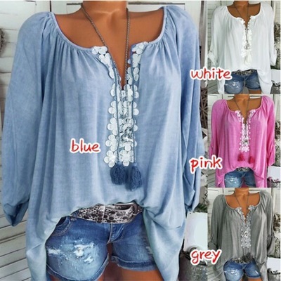 유럽과 미국 가을 새로운 플러스 사이즈 느슨한 긴 소매 여성의 셔츠 크로스 국경 대외 무역 레이스 바느질 소매 셔츠 여성용