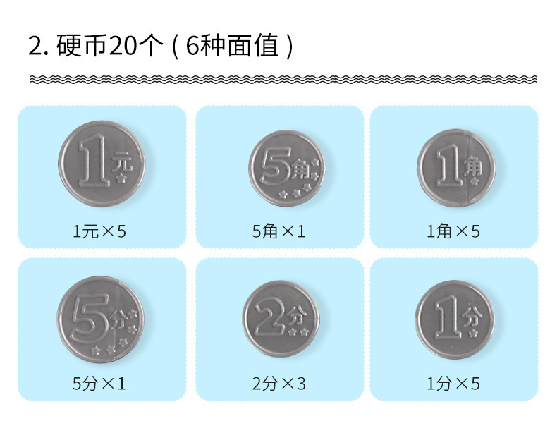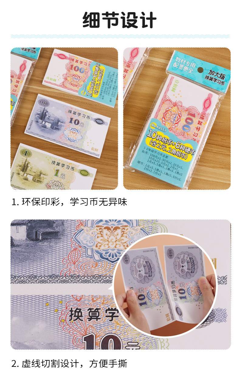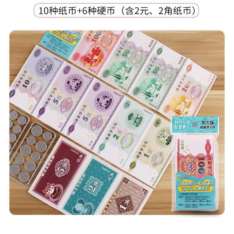 RMB 학습 수학 도구 샘플 동전 위안 Jiao Fen 교구 보조 1 학년 종이 돈 어린이 교육 및 학습 동전 동전스토어 가기