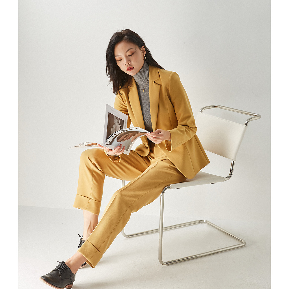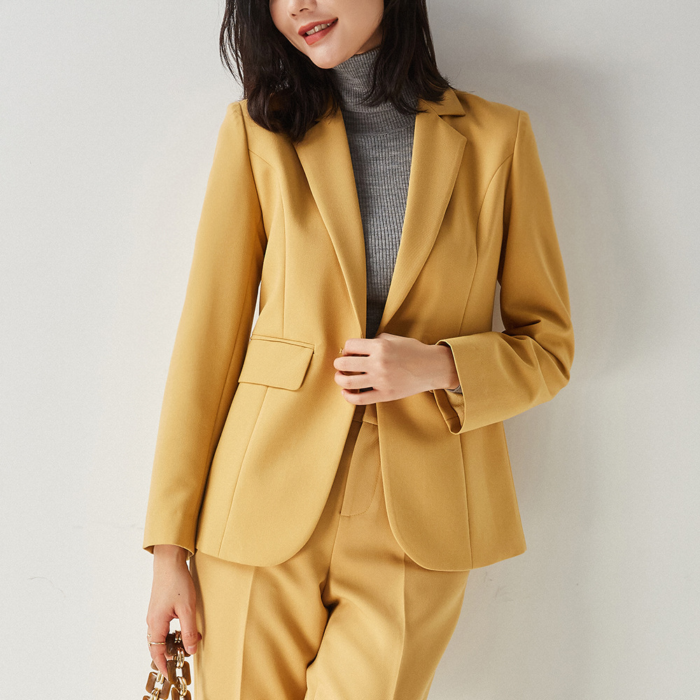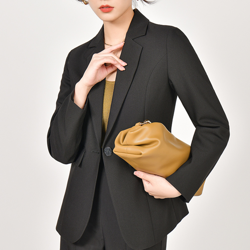 西服衣身前后片均做立体的收省立裁,形成合体之中有修身感,这一点很宝贵,塑型,轻盈,还能穿出你想要的腰身,一下就区分掉很多常规H型的西装外套,上班适度时髦,休闲轻松好穿!圆弧下摆,既有优雅女人味,不过于厉俐,又干练大气,不拘泥娇作,经dian就是胜在细水长流,经久耐穿。
