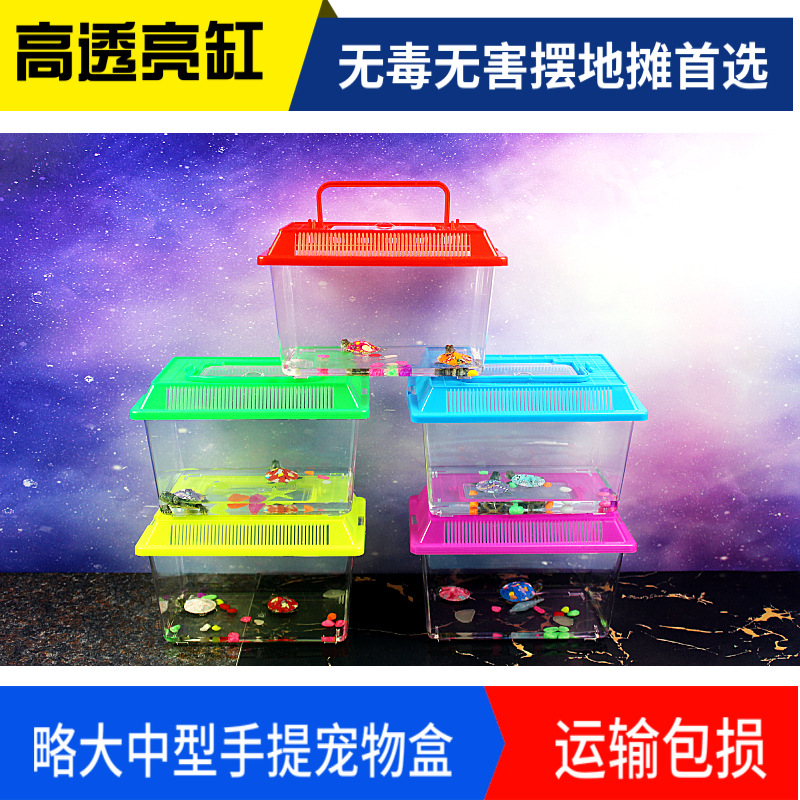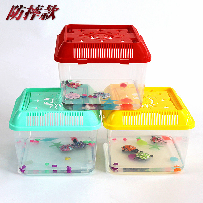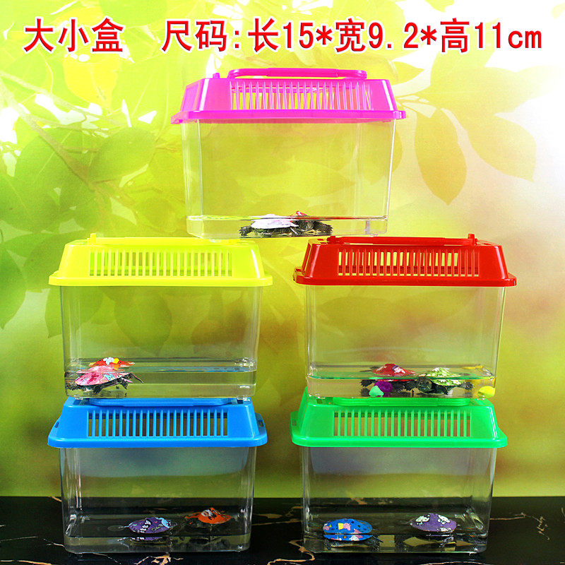 거북이 수송 상자 잔디 거북이 올챙이 포장 상자 온도 조절기 상자 전갈 작은 물고기 먹이 실린더 액세서리 금붕어 탱크 등반 애완 동물스토어 가기