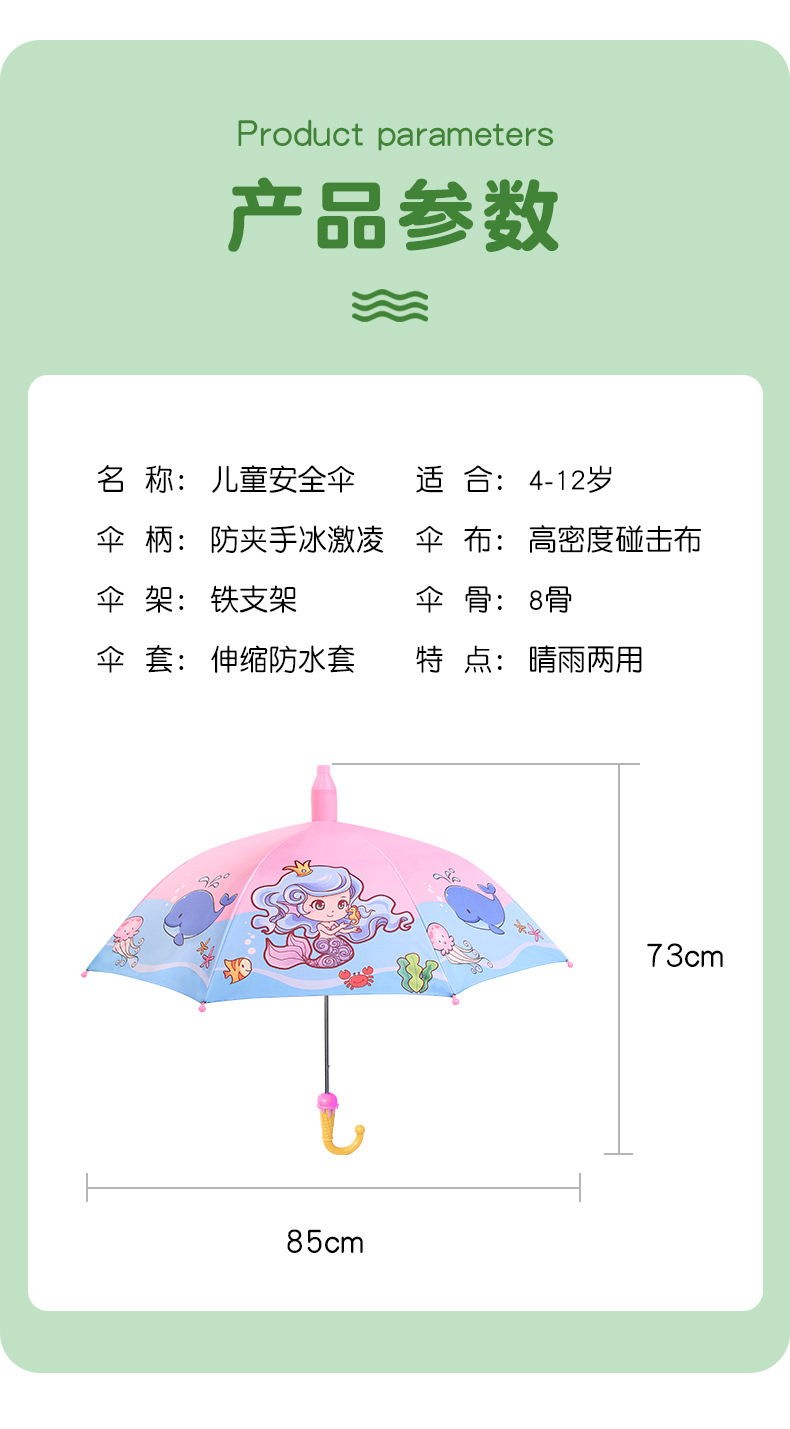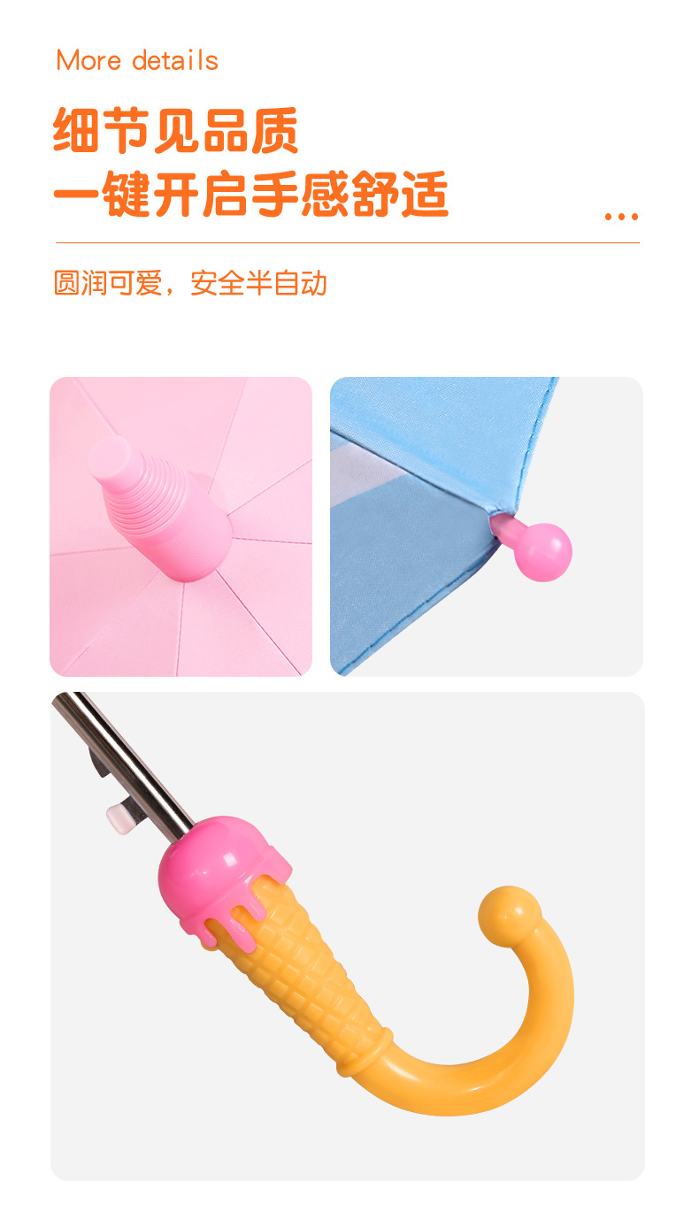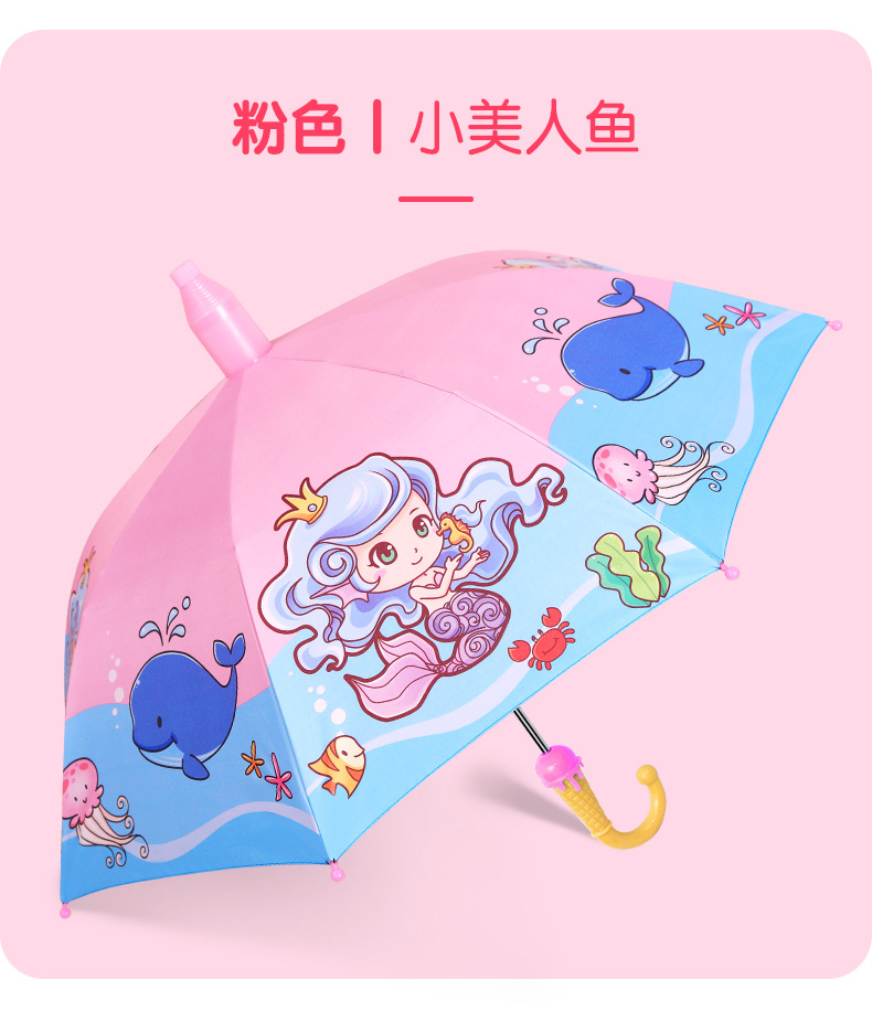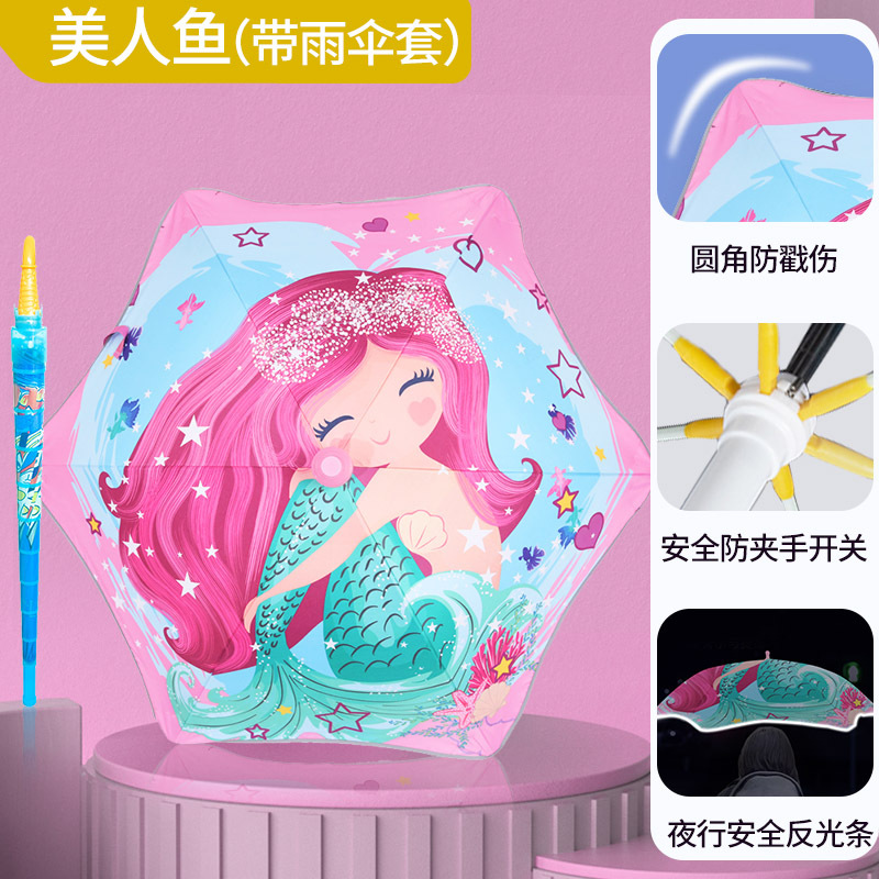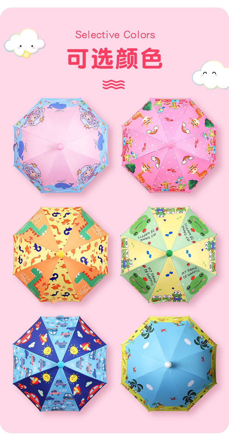 남아 및 여아용 어린이 우산, 초경량, 초등학생, 아기, 긴 손잡이, 귀여운 공주, 유치원 어린이 우산