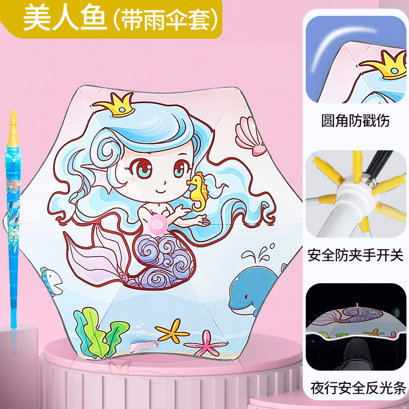 남아 및 여아용 어린이 우산, 초경량, 초등학생, 아기, 긴 손잡이, 귀여운 공주, 유치원 어린이 우산스토어 가기