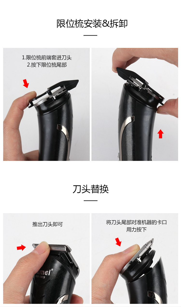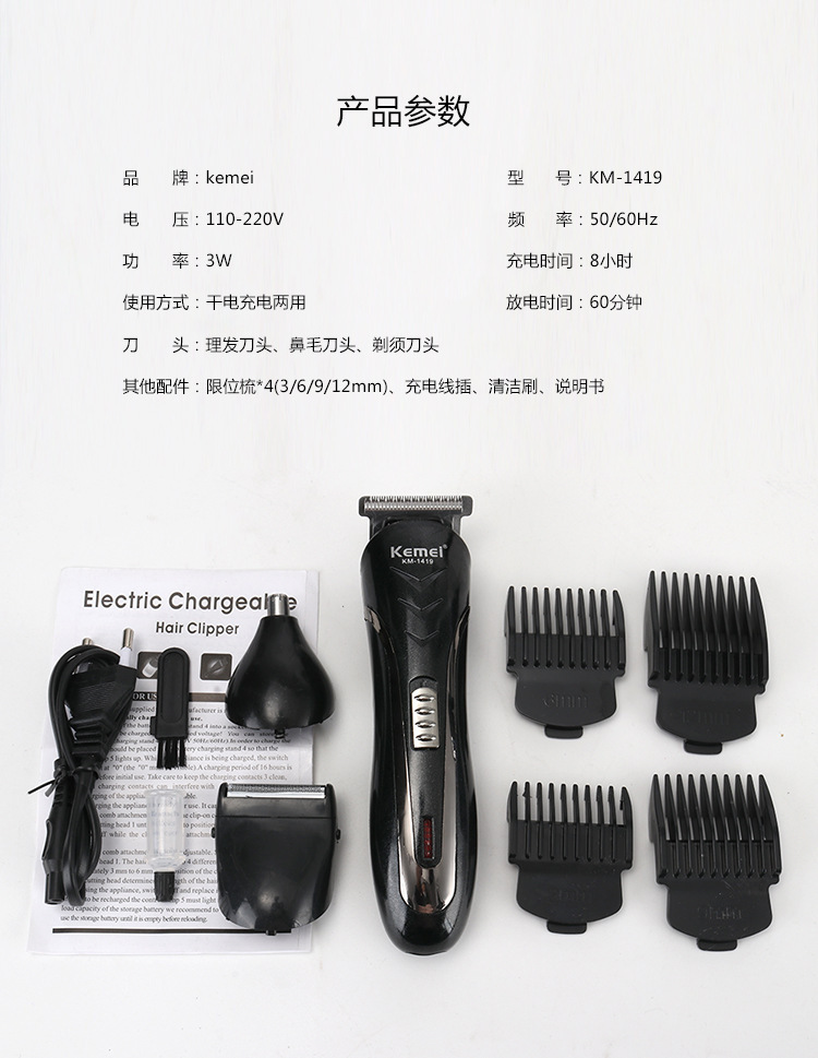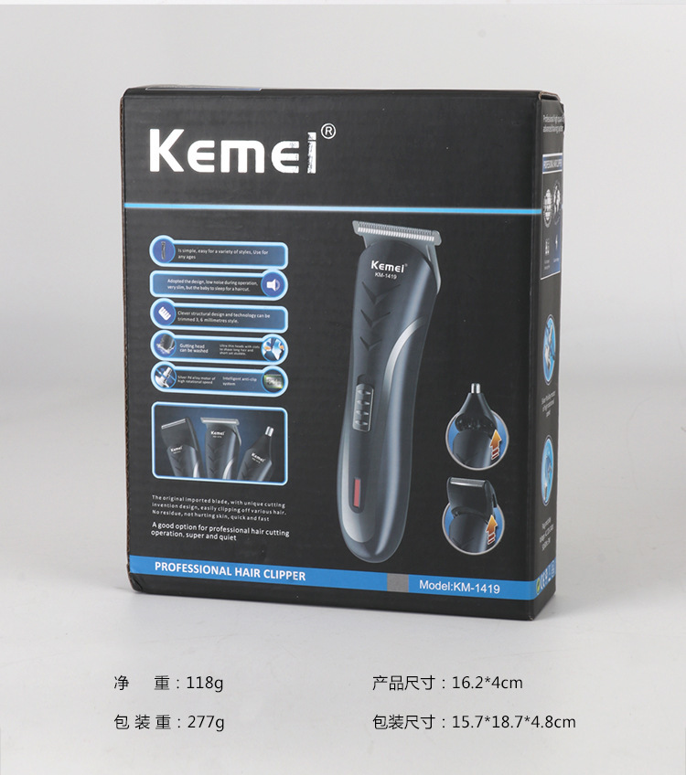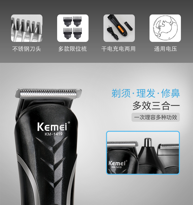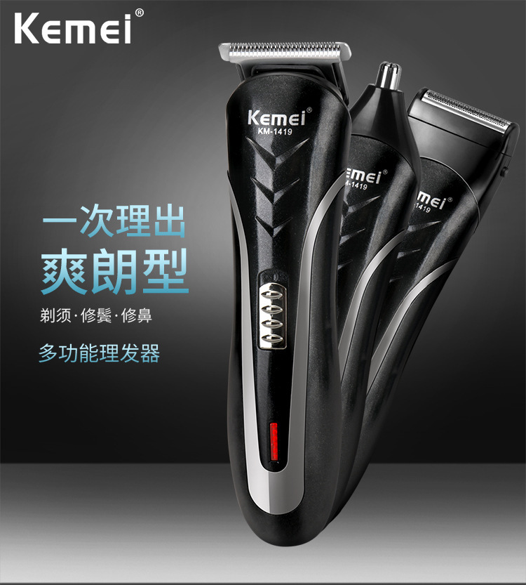 Kemei KM-1419 헤어 클리퍼 다기능 전기 헤어 트리머 가정용 코털 트리머 3-in-1 헤어 클리퍼