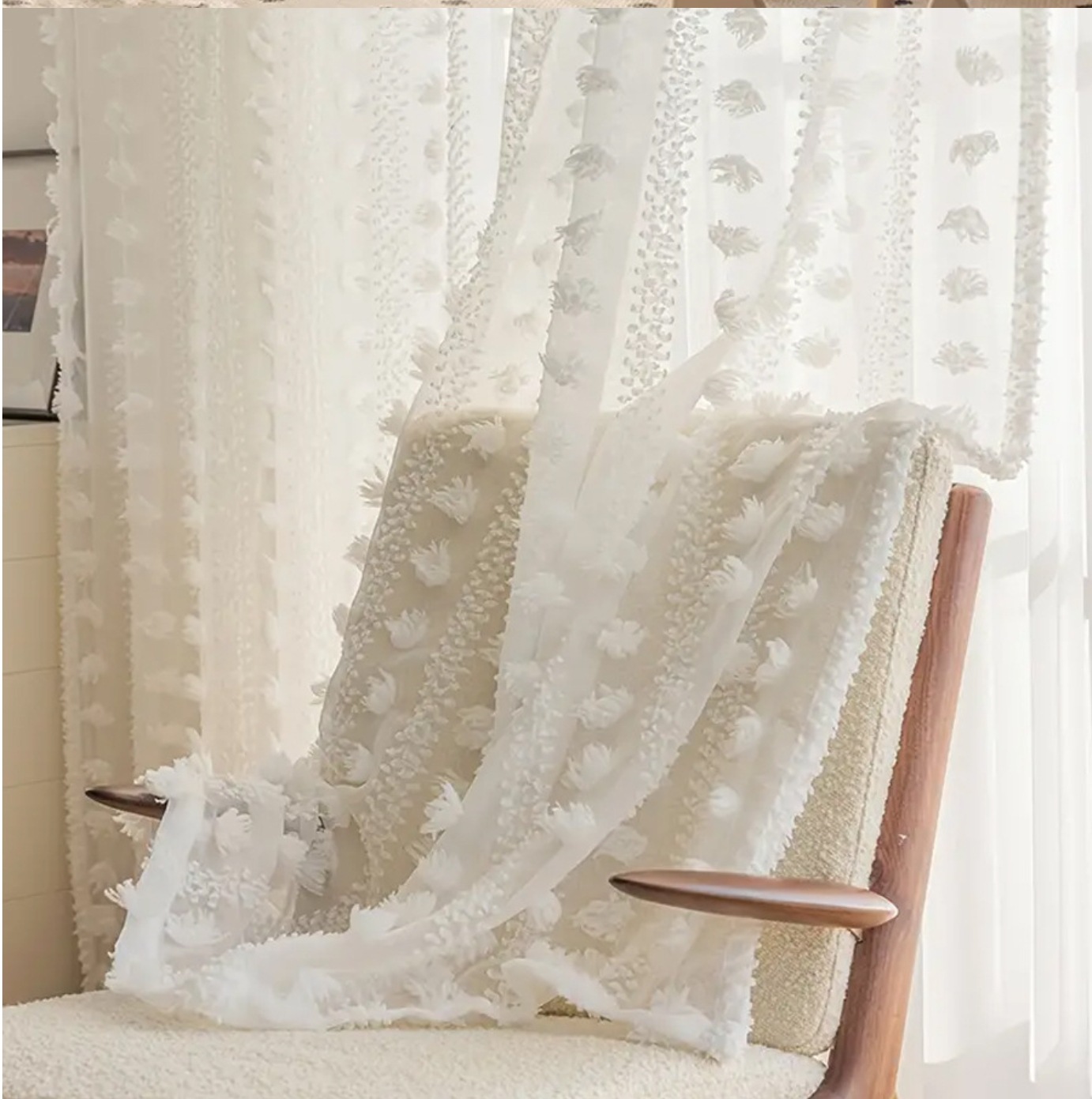 미국 자카드 3 차원 모피 공 투명 커튼 거실 침실 식당 국경 창 화면 투명 커튼 공장 재고스토어 가기