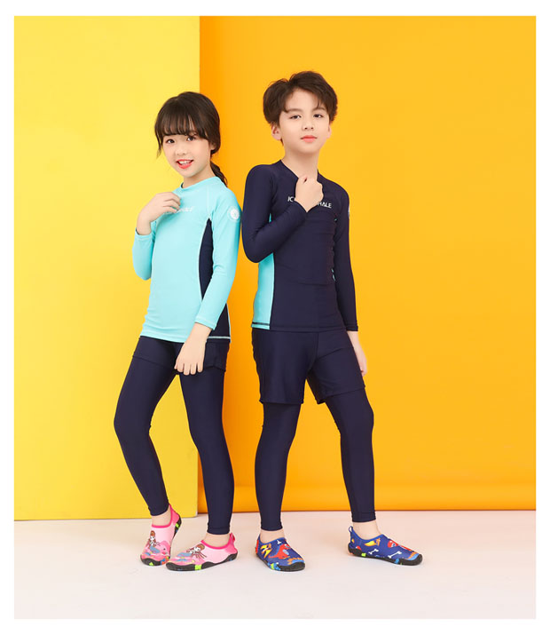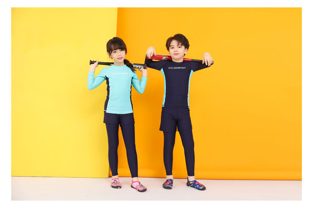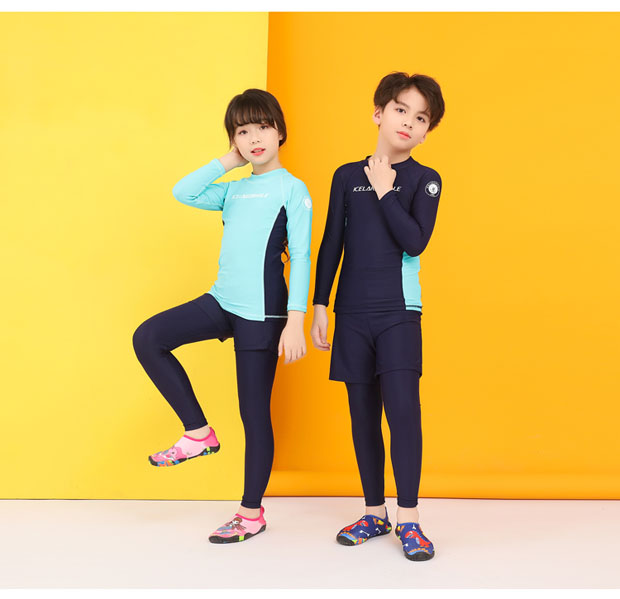 새로운 스플릿 남성과 여성의 소형 및 대형 어린이 선 스크린 속건 어린이 수영복 긴 소매 바지 방수 여성 스노클링 수영복