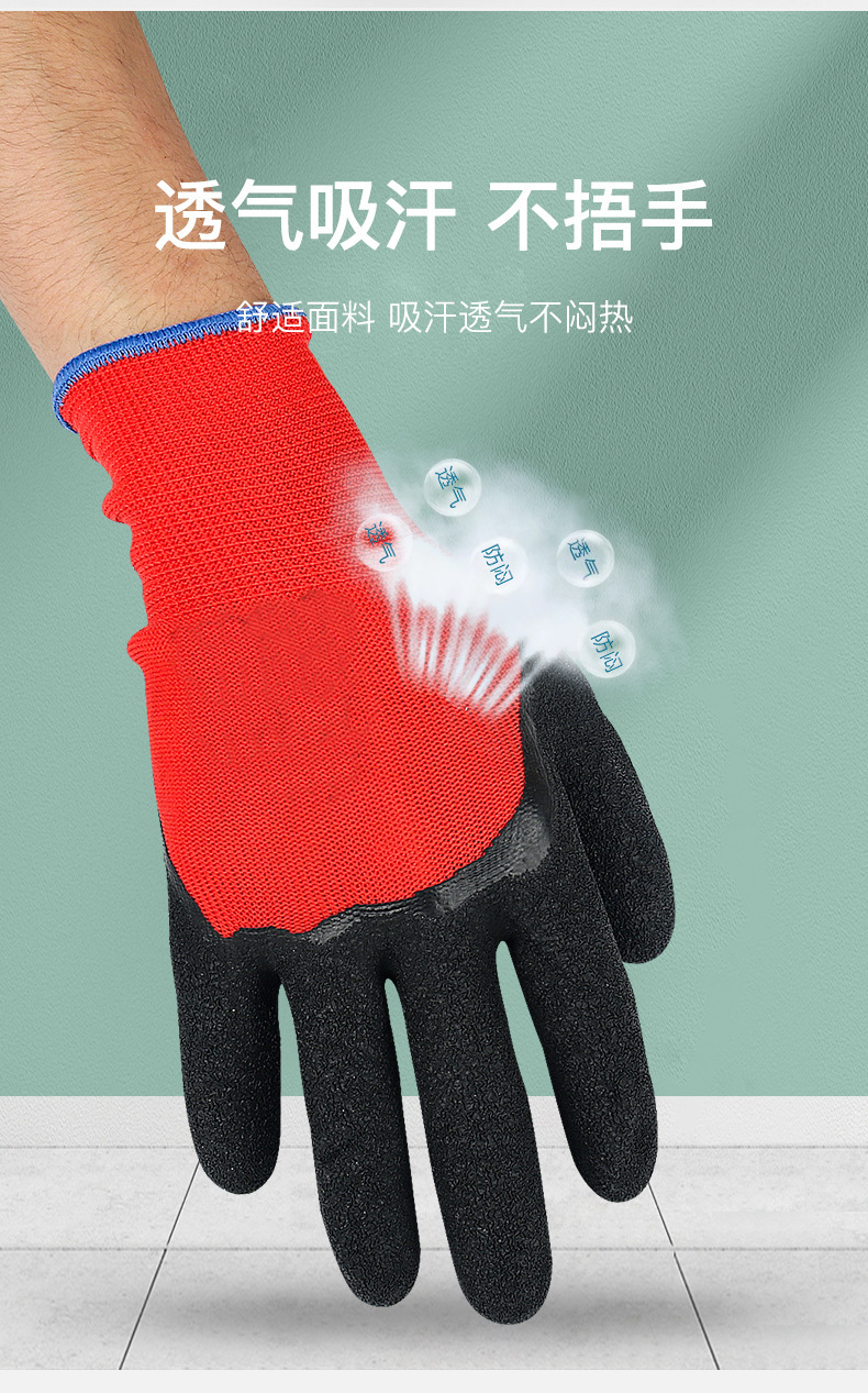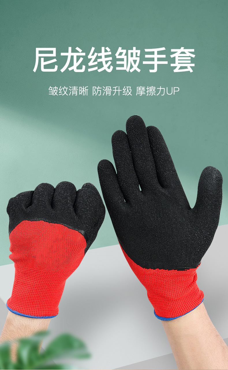 노동 보호 고무 장갑 13 핀 주름 대형 반걸이 내마모성 주름 장갑 통기성 미끄럼 방지 고무 장갑 도매스토어 가기