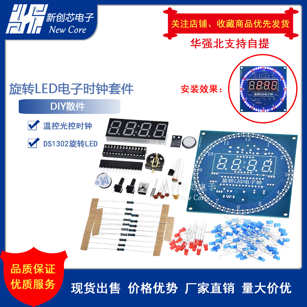 전자 시계 키트 C51 단일 칩 마이크로 컴퓨터 조명 제어 온도 DS1302 회전 LED 실행 빛 DIY 생산 부품스토어 가기
