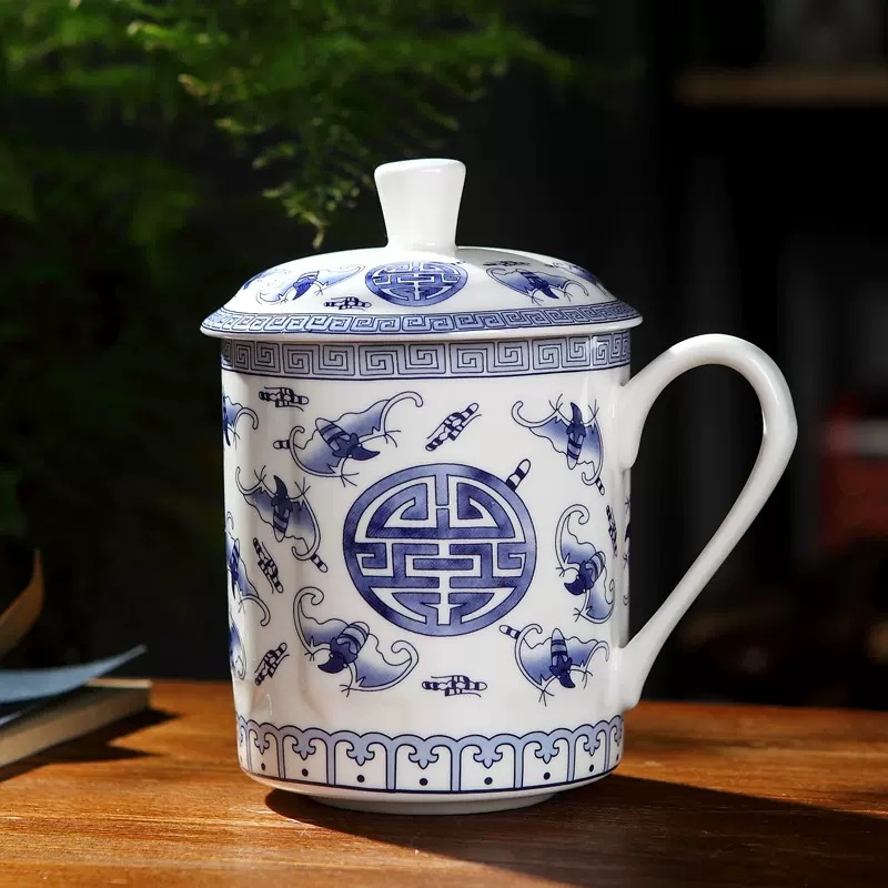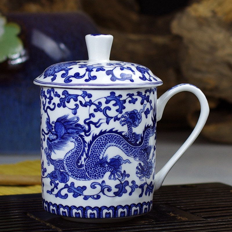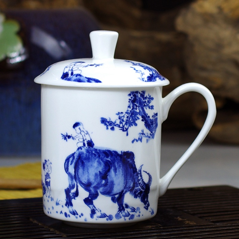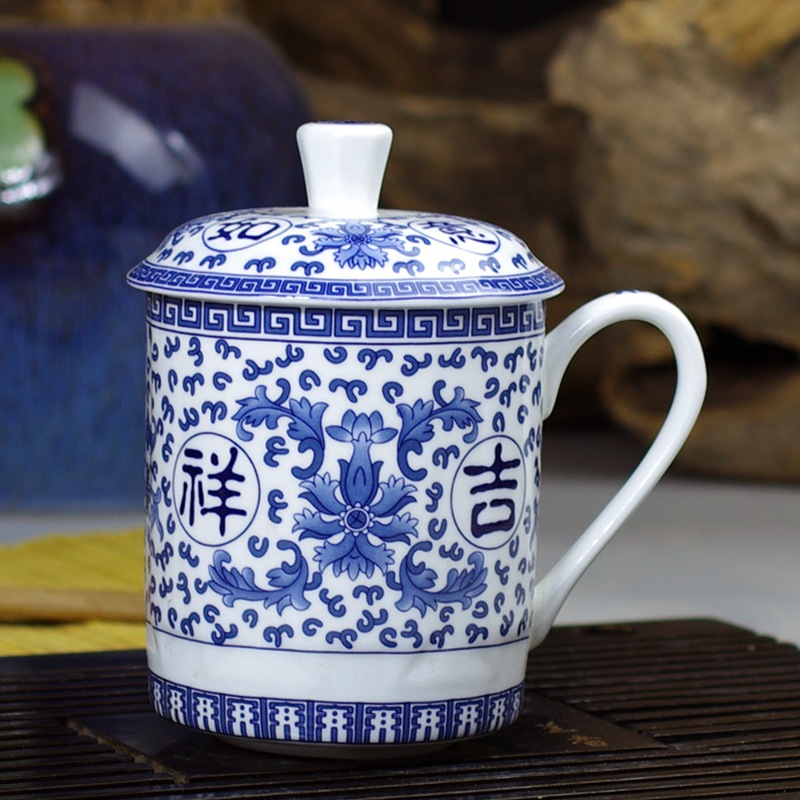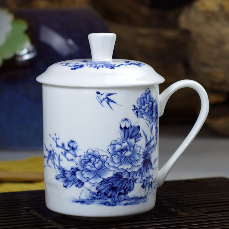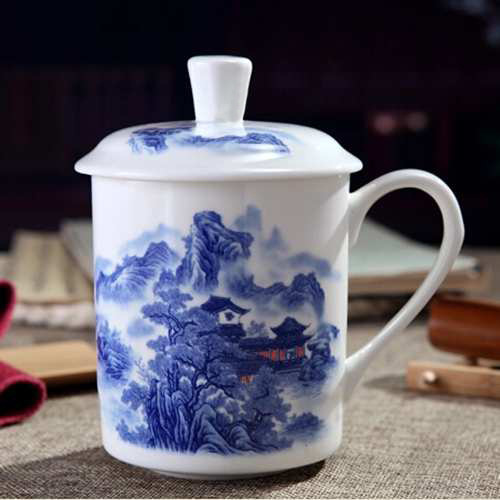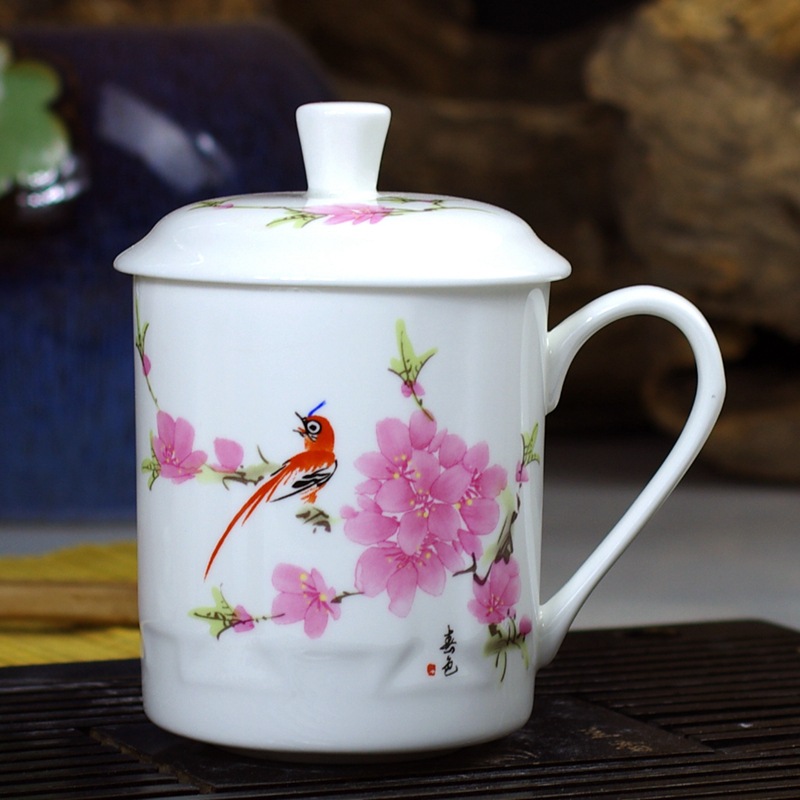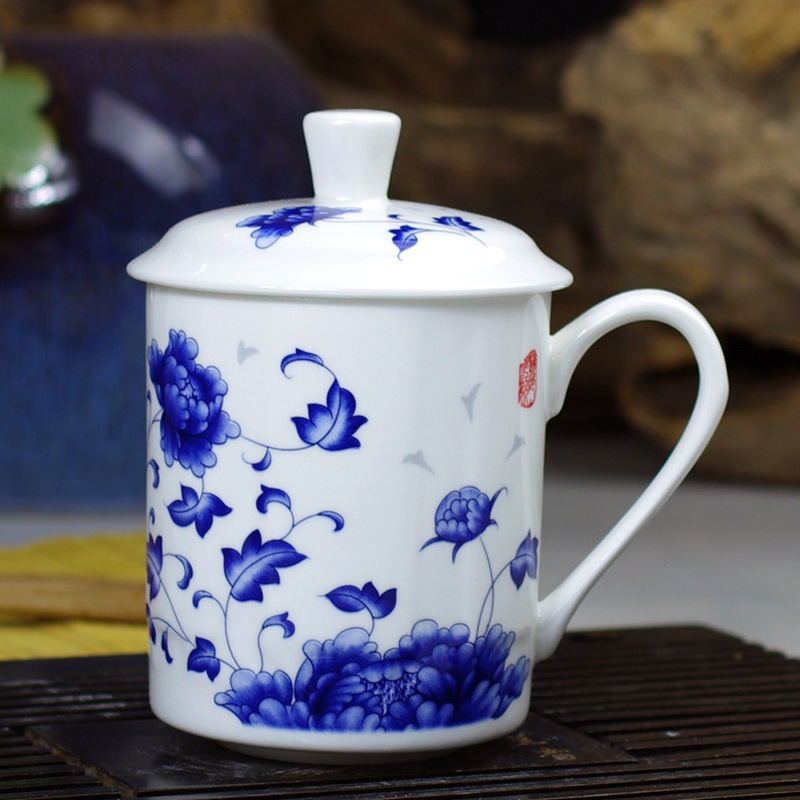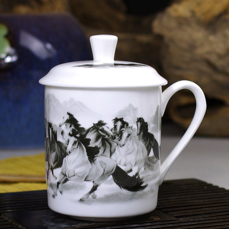 뚜껑이있는 Jingdezhen 본 중국 찻잔 컨퍼런스 컵 세라믹 물 컵 사무실 컵 선물 컵 풍경 컵 공장 도매스토어 가기