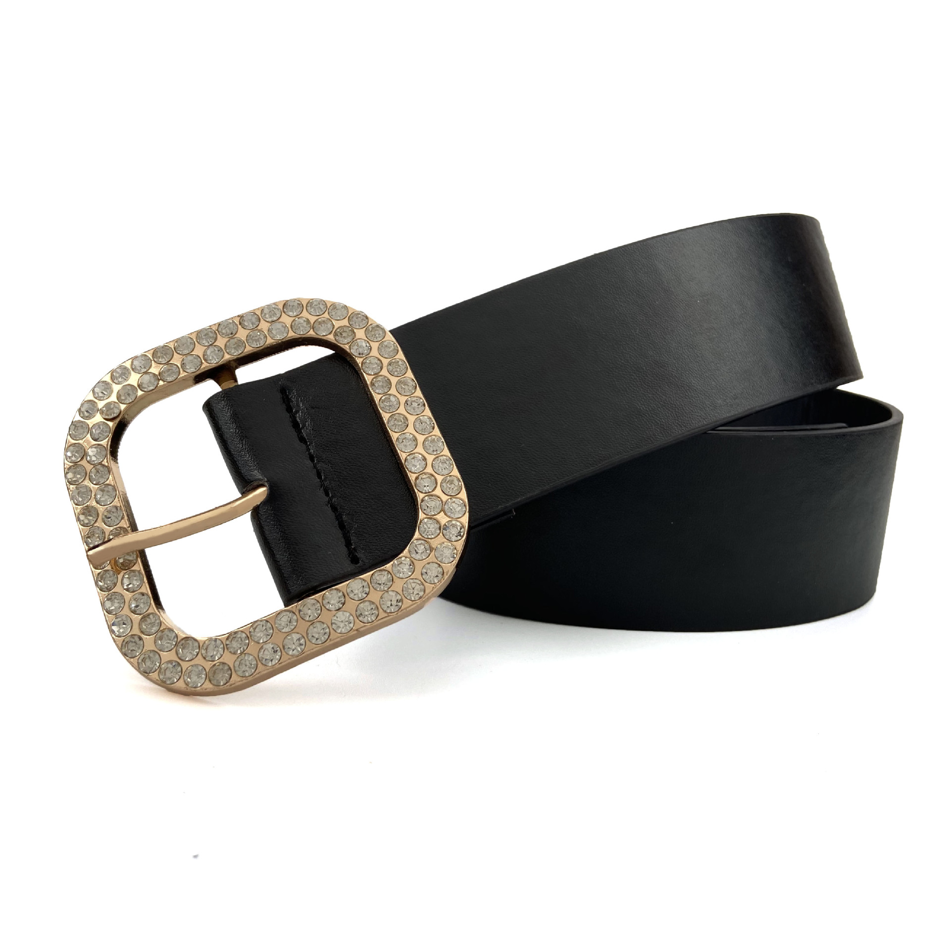 Bangmai 2021 새로운 라인 석 상감 PU 벨트 여성용 패션 개성 다이아몬드 와이드 벨트 여성용 다이아몬드 와이드 웨이스트 커버스토어 가기