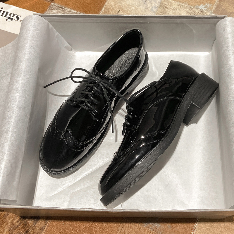 여성을위한 정품 가죽 작은 가죽 신발 가을 2025 영국 스타일 블랙 플랫 바닥 레이스 업 콩 부드러운 단독 로프 작업 신발스토어 가기