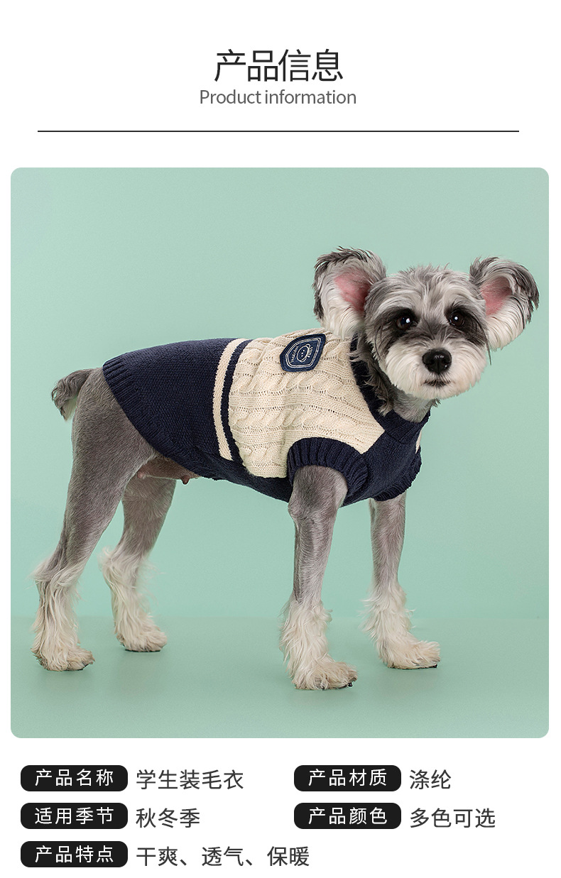 애완 동물 옷 가을과 겨울 새로운 니트 조끼 V-넥 대학 스타일 조끼 테디 보메이 패션 개 옷 도매스토어 가기