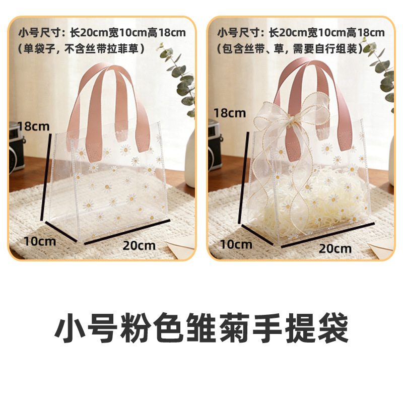 • 작은 핑크 데이지; 길이 20cm, 폭 10cm, 높이 18cm (리본 + 라피아 포함)