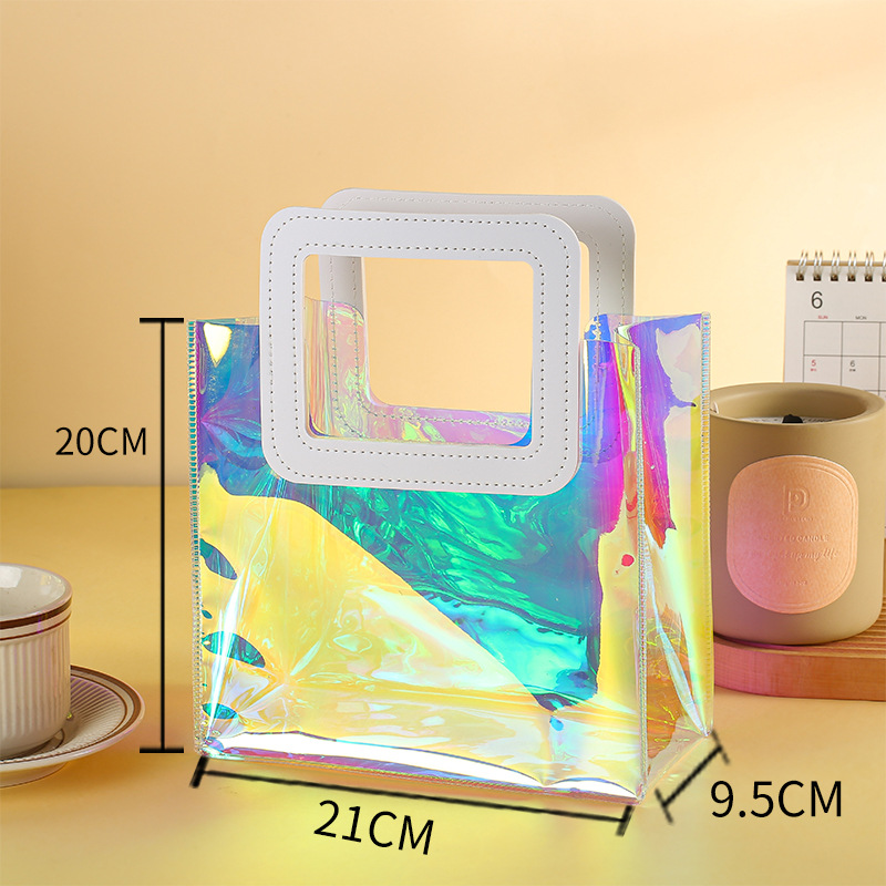 고급 플라스틱 투명 선물 가방, 웨딩 답례품, 생일 선물, 레이저 PVC 핸드백스토어 가기