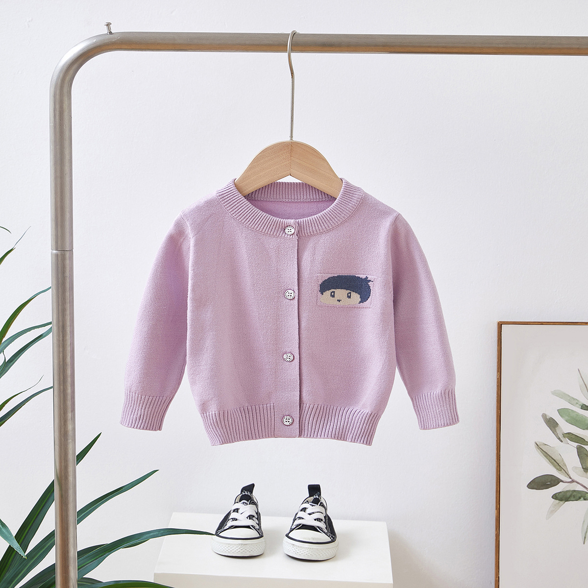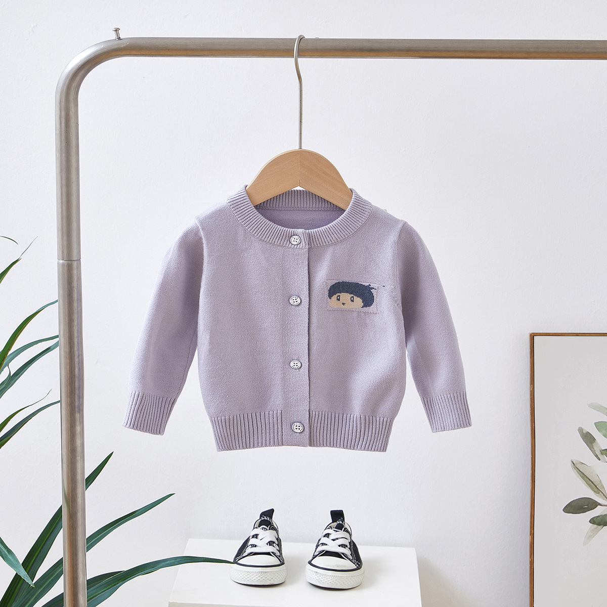 2025년 신상 아동복 스웨터 봄 유아용 라운드 넥 솔리드 컬러 재킷 소녀 면 니트 가디건을 생방송으로 제공합니다.