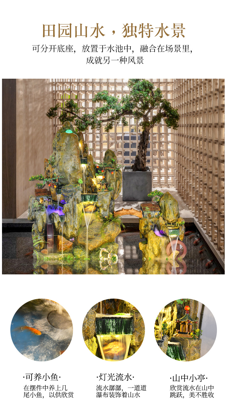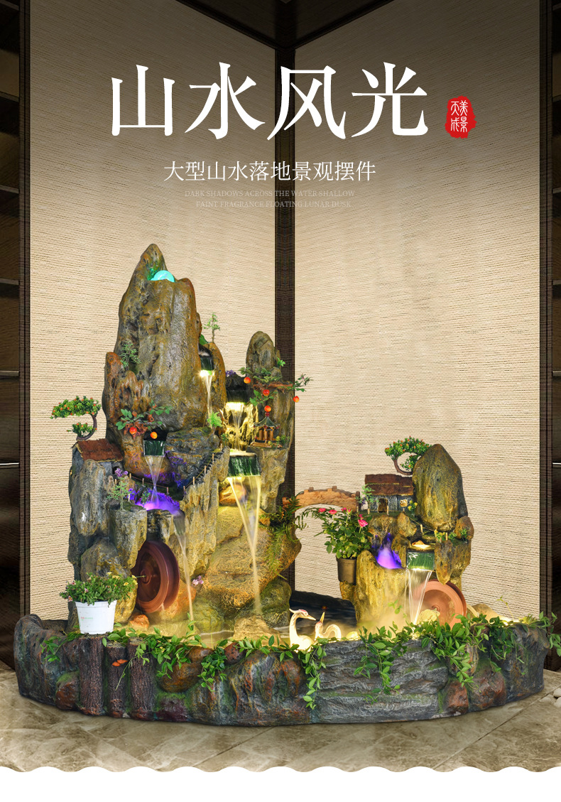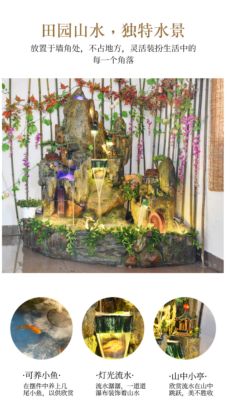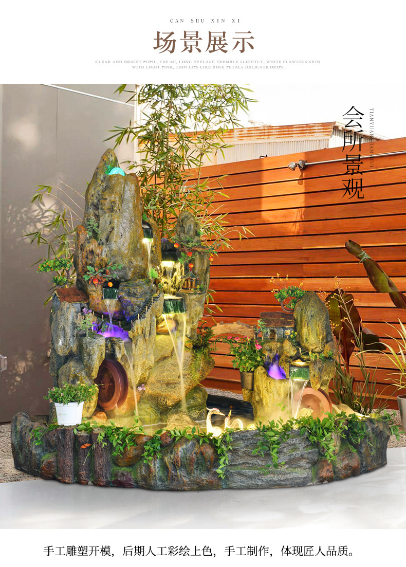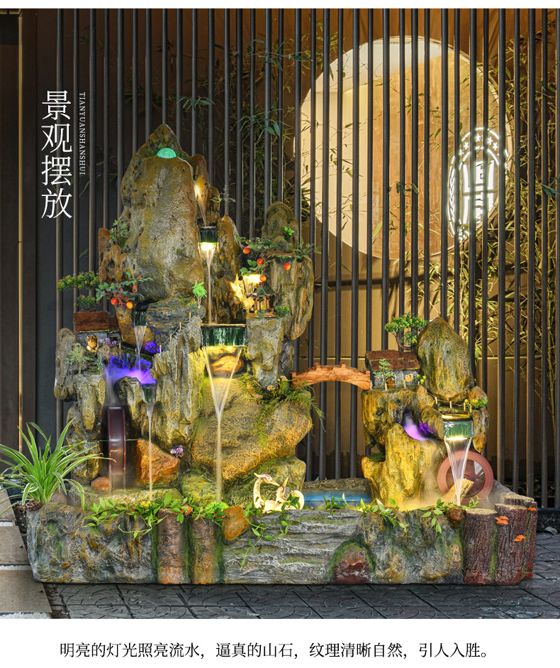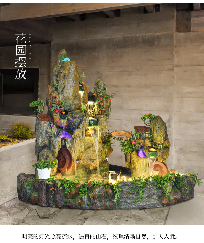 Rockery 물 분수 풍수 바퀴 대형 바닥 장식 실내 야외 물고기 연못 조경 호텔 거실 정원스토어 가기