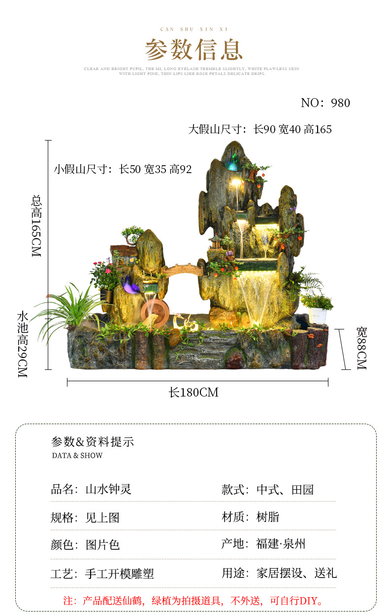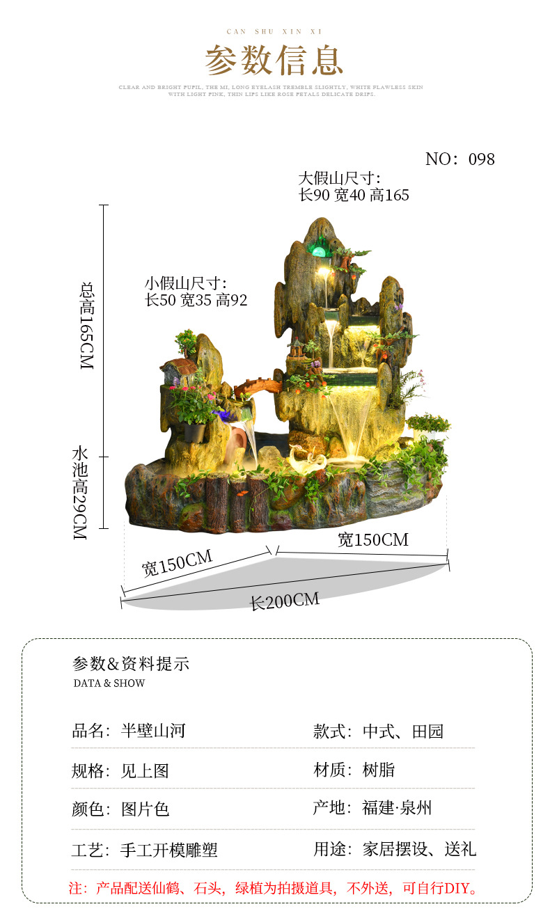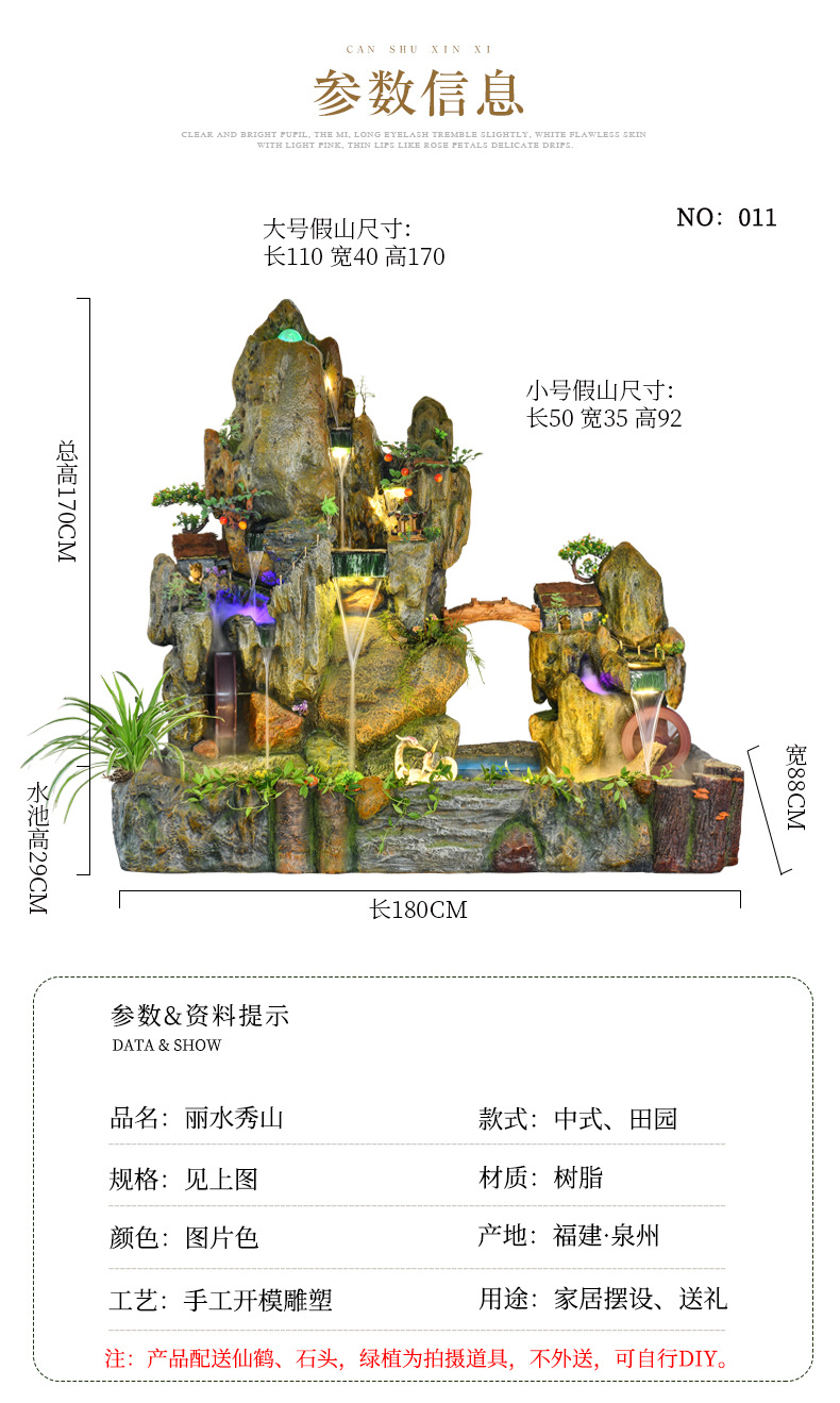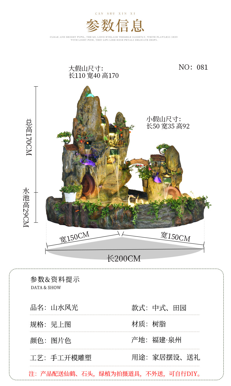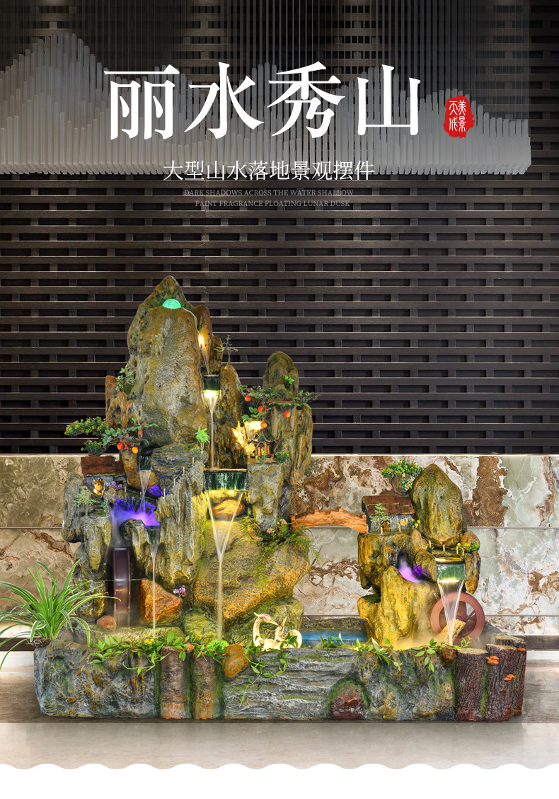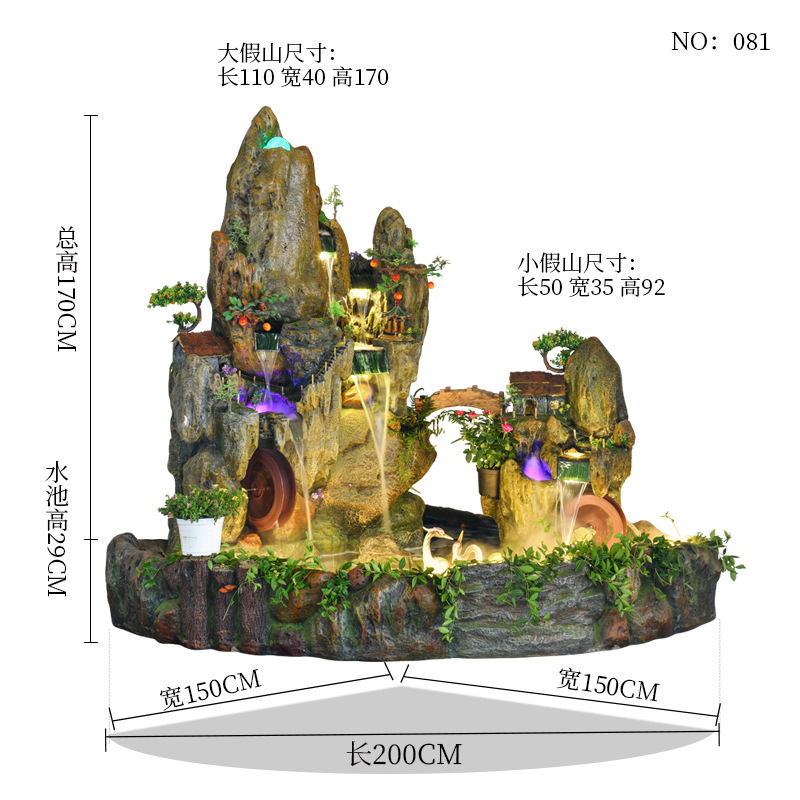 Rockery 물 분수 풍수 바퀴 대형 바닥 장식 실내 야외 물고기 연못 조경 호텔 거실 정원스토어 가기