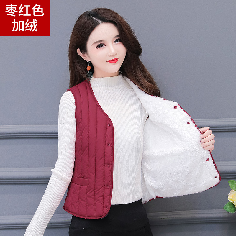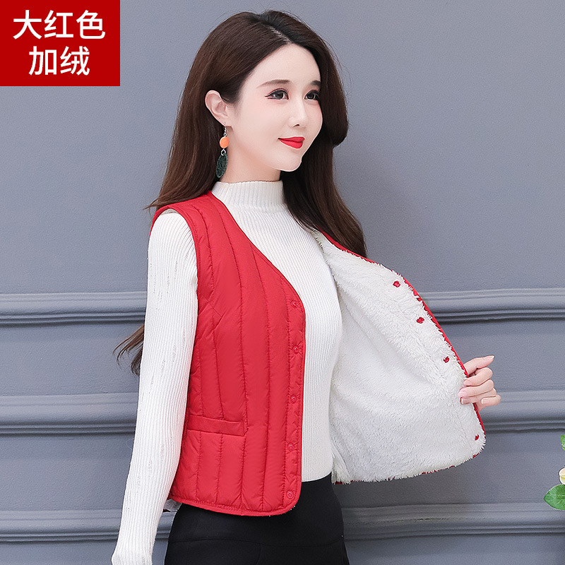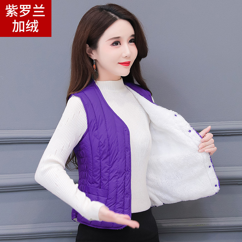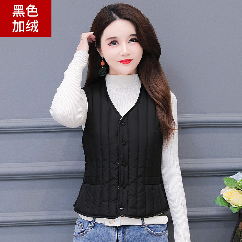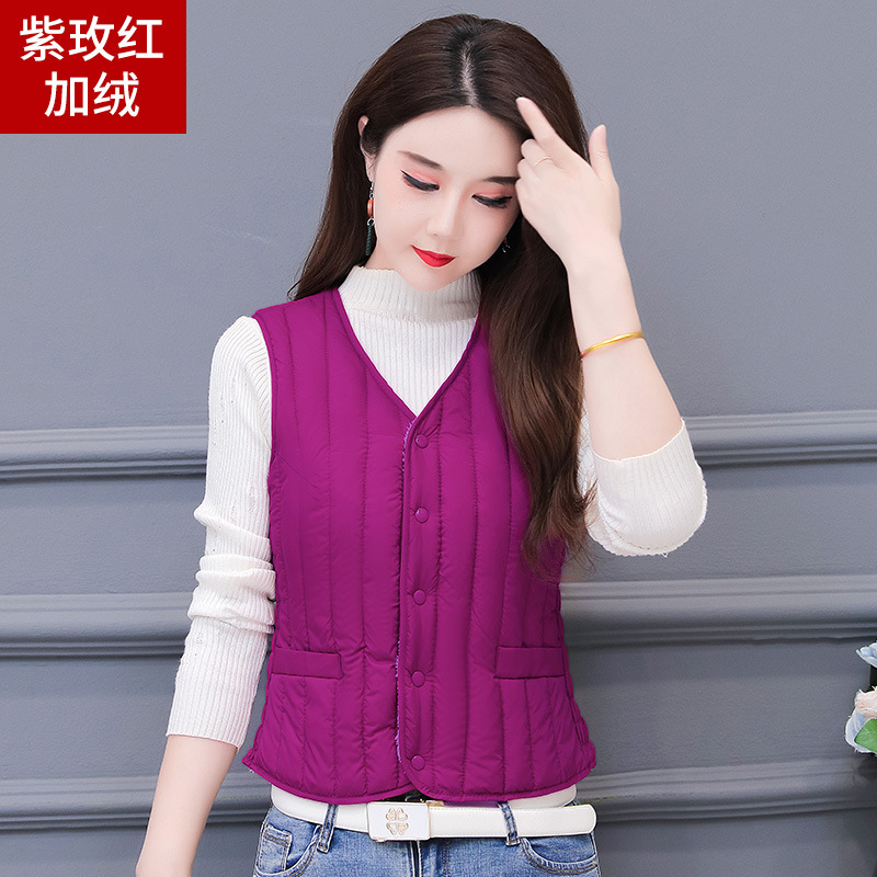 여성을위한 가을, 겨울 다운 코튼 조끼 플러스 벨벳 2024 새로운 슬림 피트 내부 착용 따뜻한 중년 조끼 짧은 스타일 도매스토어 가기
