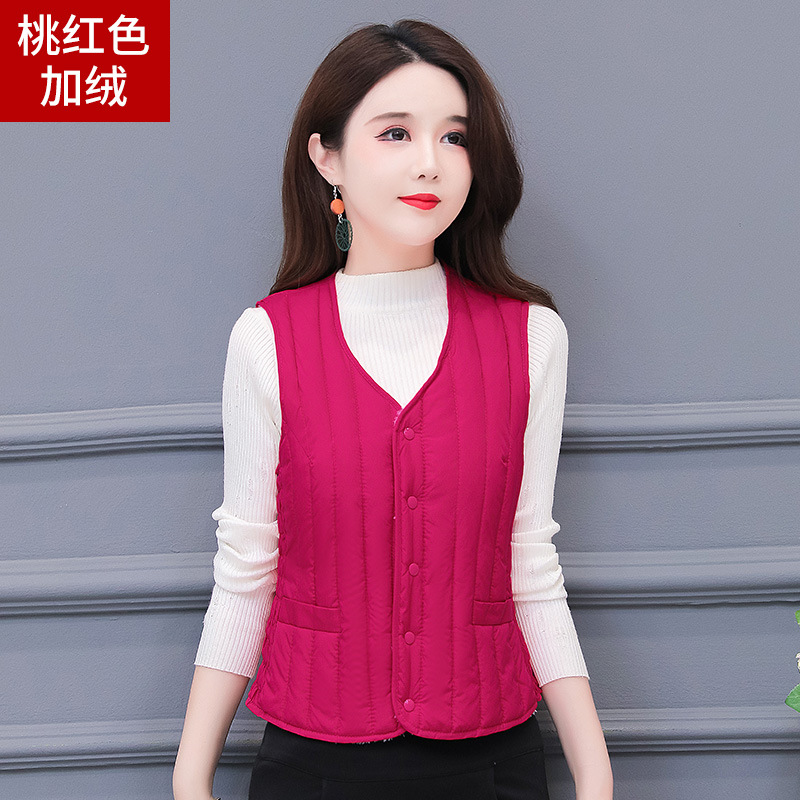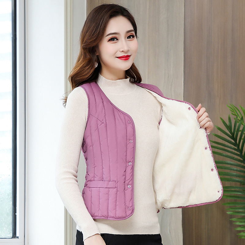 여성을위한 가을, 겨울 다운 코튼 조끼 플러스 벨벳 2024 새로운 슬림 피트 내부 착용 따뜻한 중년 조끼 짧은 스타일 도매