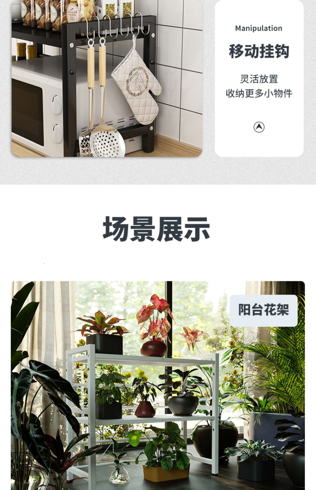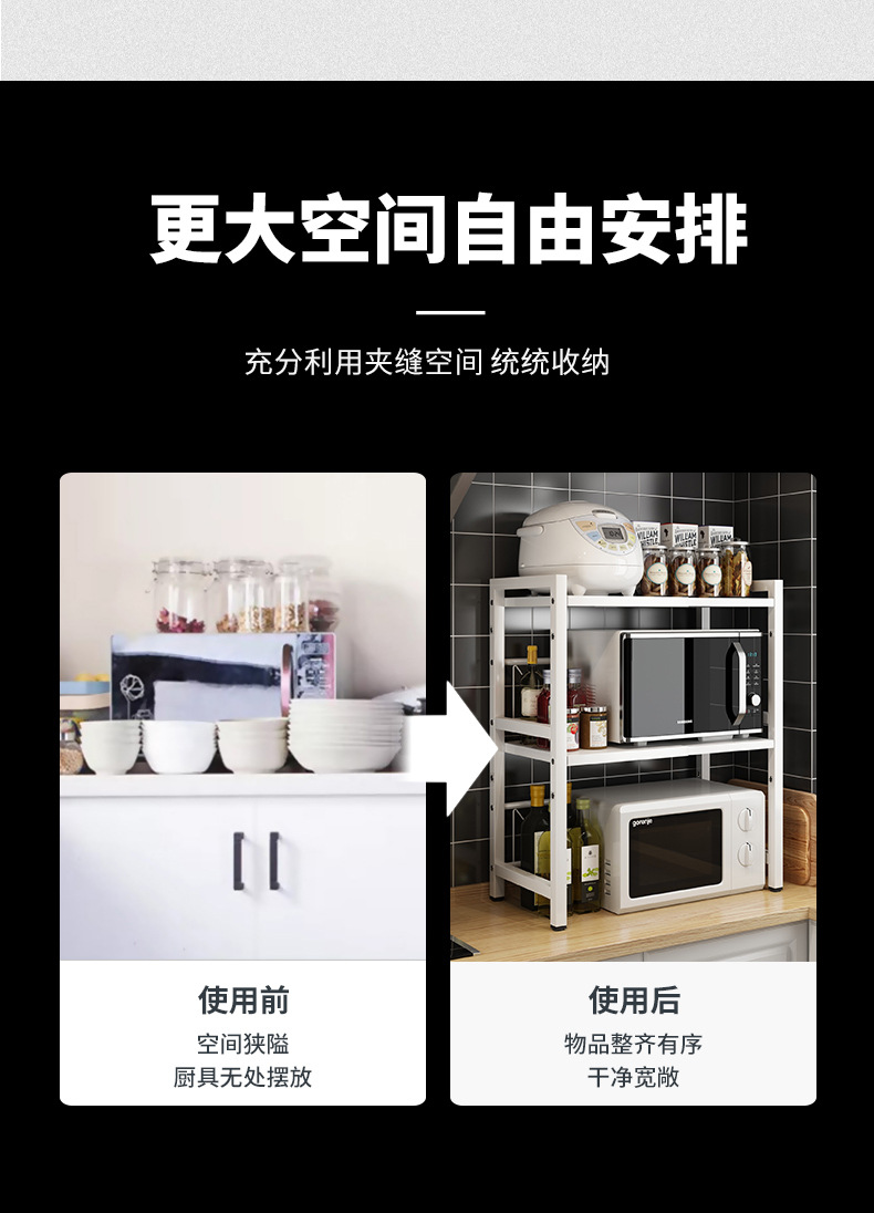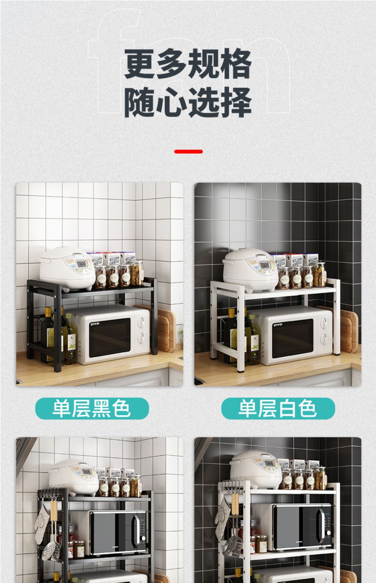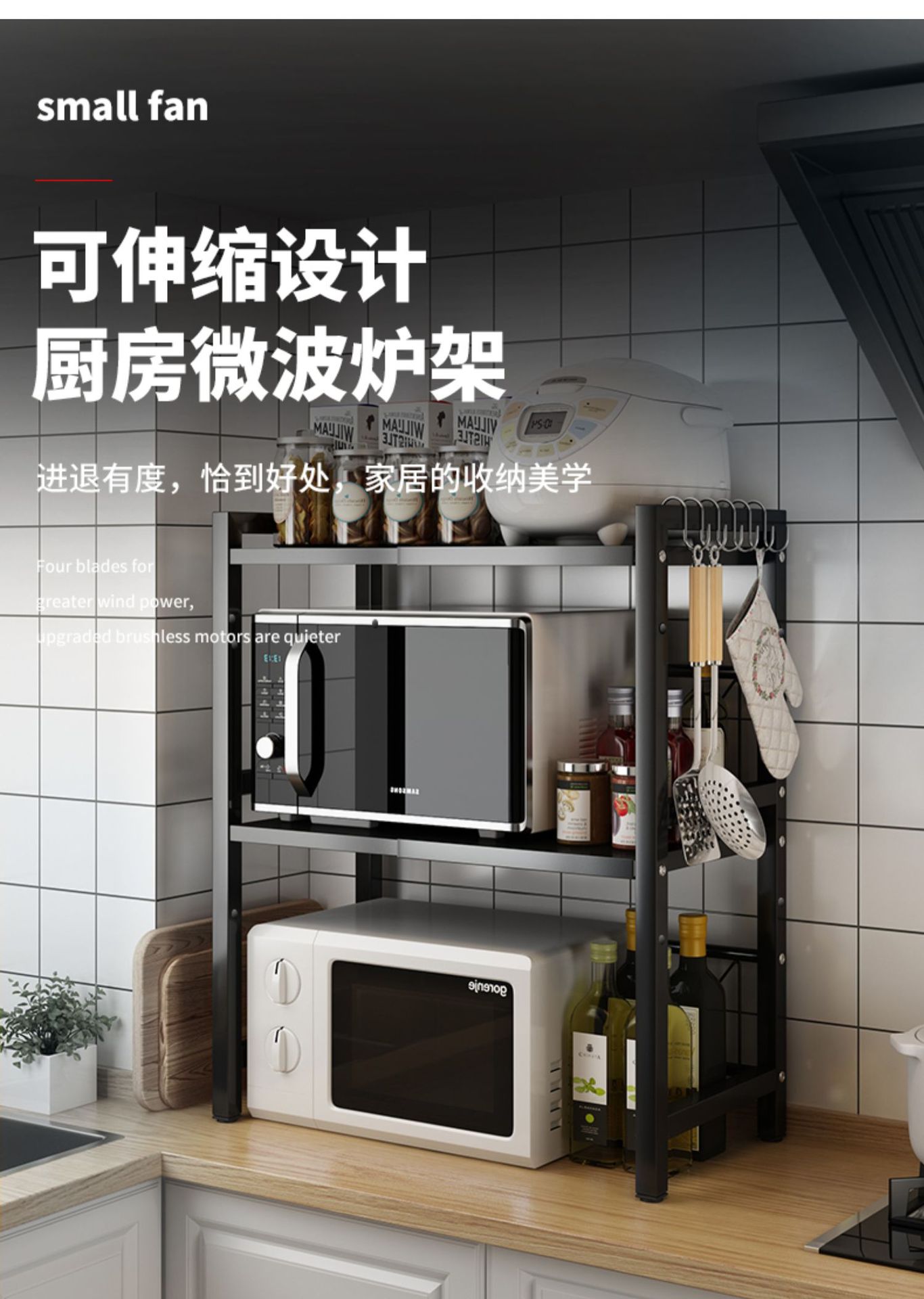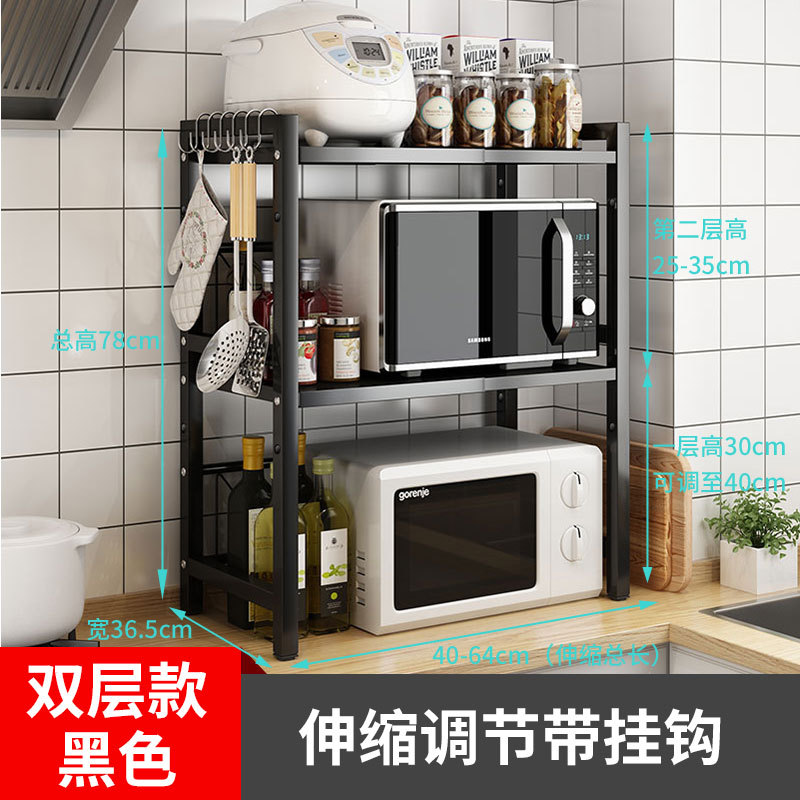 可伸缩厨房置物架家用落地家用双层台面微波炉烤箱电饭锅收纳支架