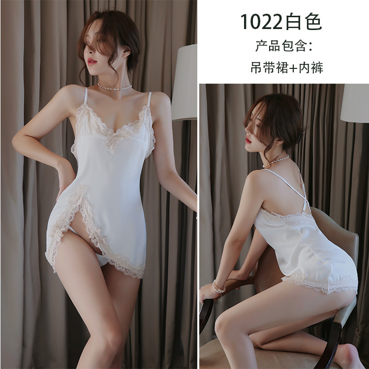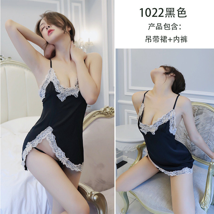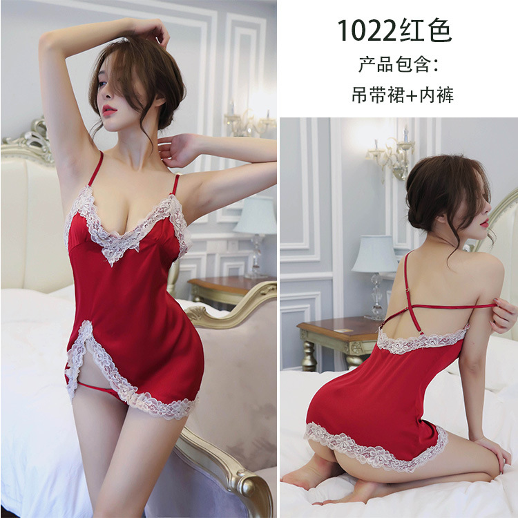 긴 밤 섹스 란제리 여자의 등이없는 스트랩 잠옷 섹시 깊은 V 잠옷 유혹 세트 밤 흐리게 1022