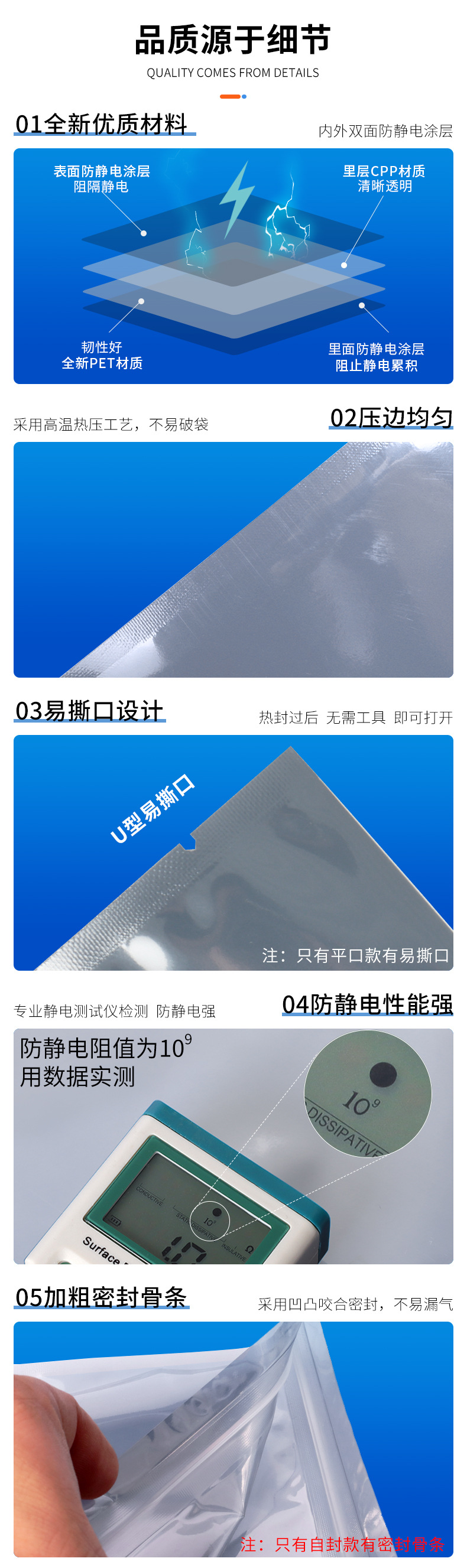 • 5x8cm*15 실크 [정전기 방지 플랫 포켓]*[100개/팩]
