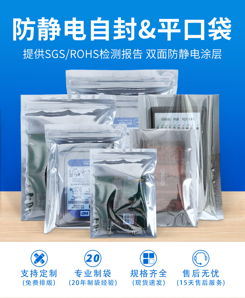 맞춤형 15 실크 정전기 방지 지퍼 잠금 가방 마더 보드 씰링 가방 전자 부품 플라스틱 씰링 가방 디지털 액세서리 플랫 포켓스토어 가기