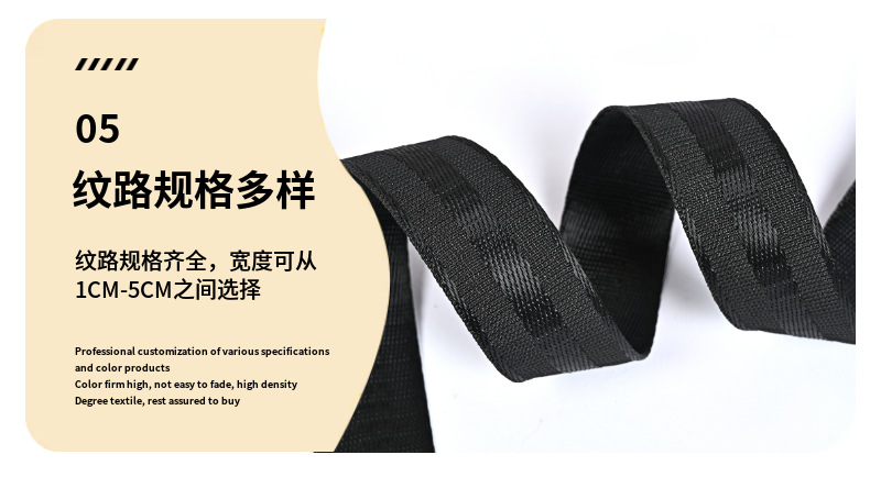 검은색 모조 나일론 웨빙, 헤링본 패턴, 고밀도 패턴, 아메리칸 패턴, 책가방 끈, 직조 시트 안전벨트, 바인딩 벨트, 부자재