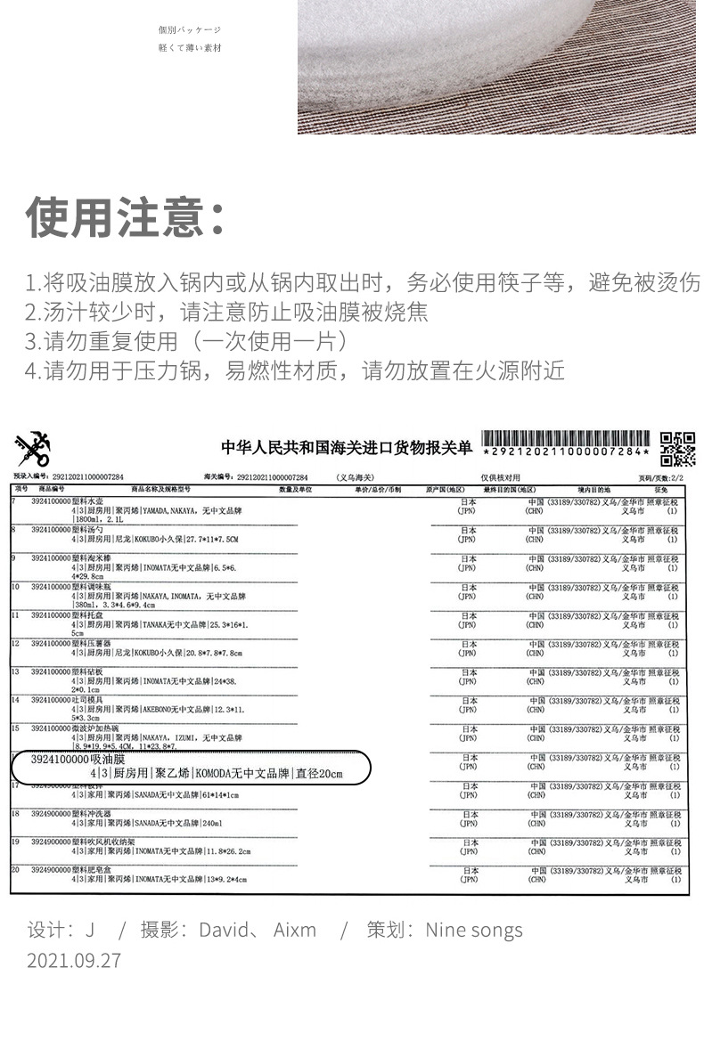 SEIWA-PRO 수프 기름 흡수 종이 수프 기름 거품을 제거하는 기름 흡수 필름 주방 기름 흡수 면 식품 필터 종이