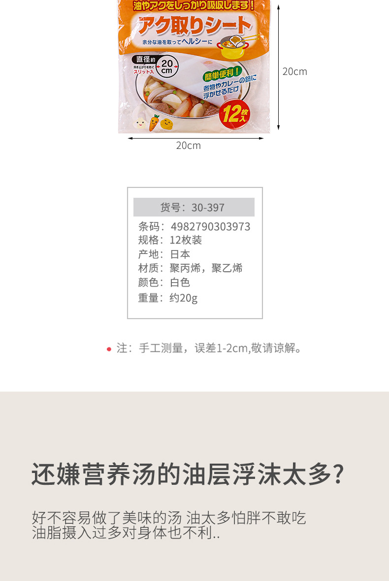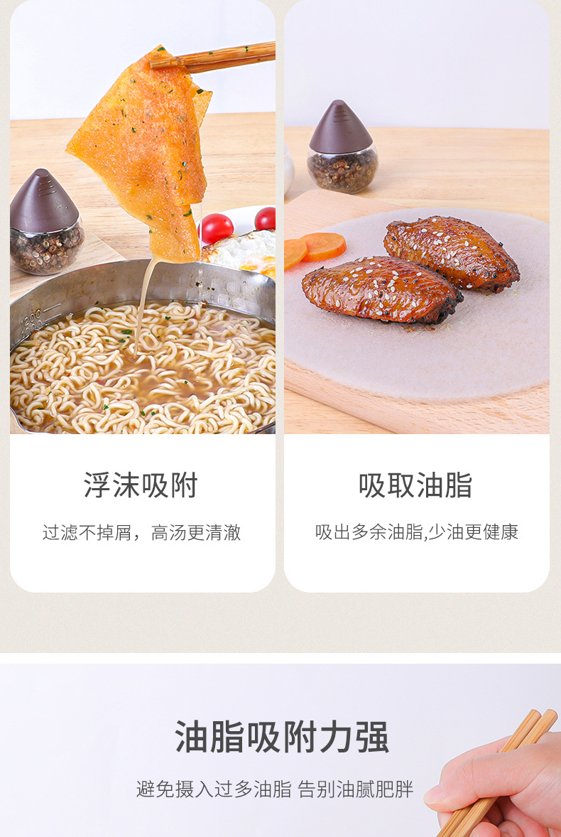 SEIWA-PRO 수프 기름 흡수 종이 수프 기름 거품을 제거하는 기름 흡수 필름 주방 기름 흡수 면 식품 필터 종이스토어 가기