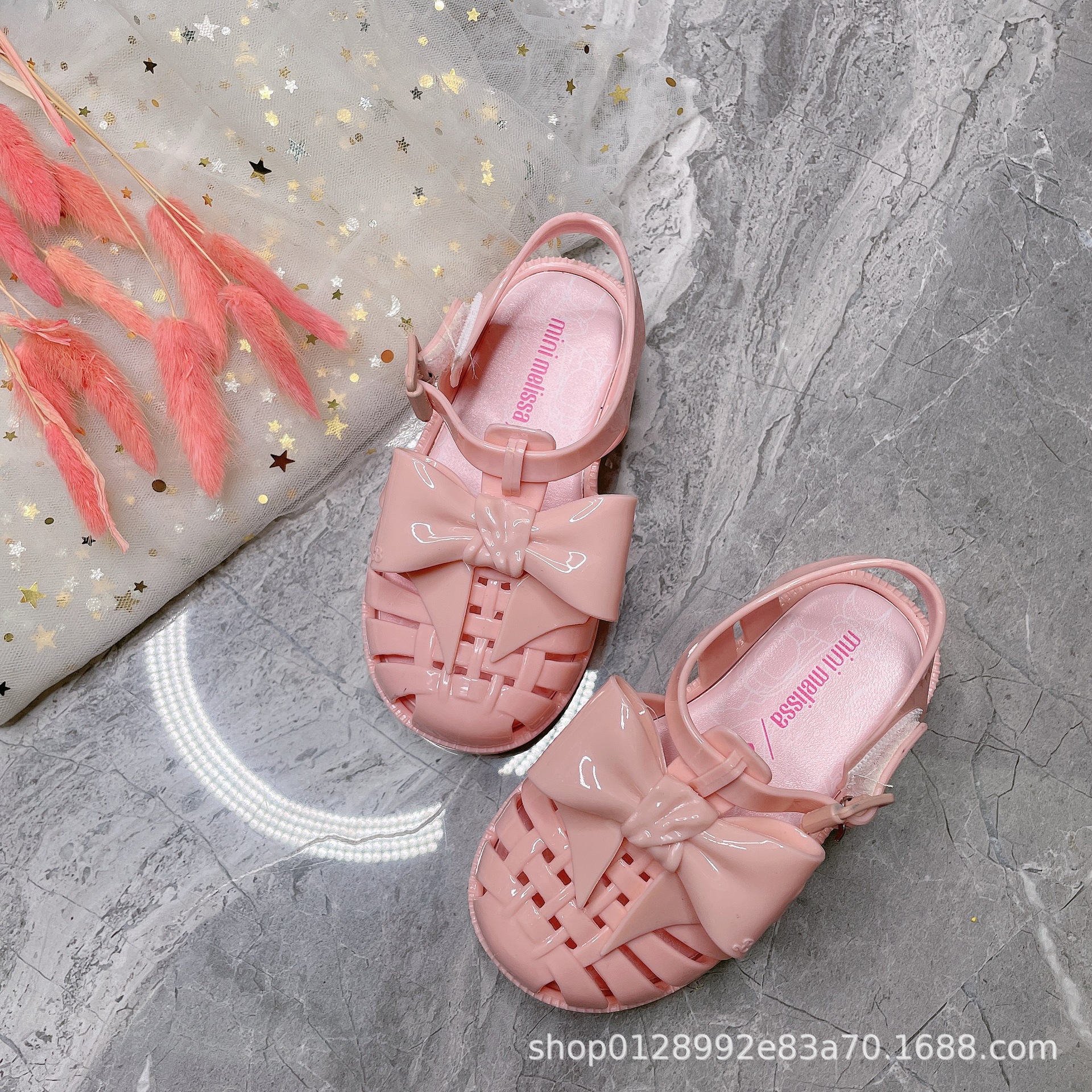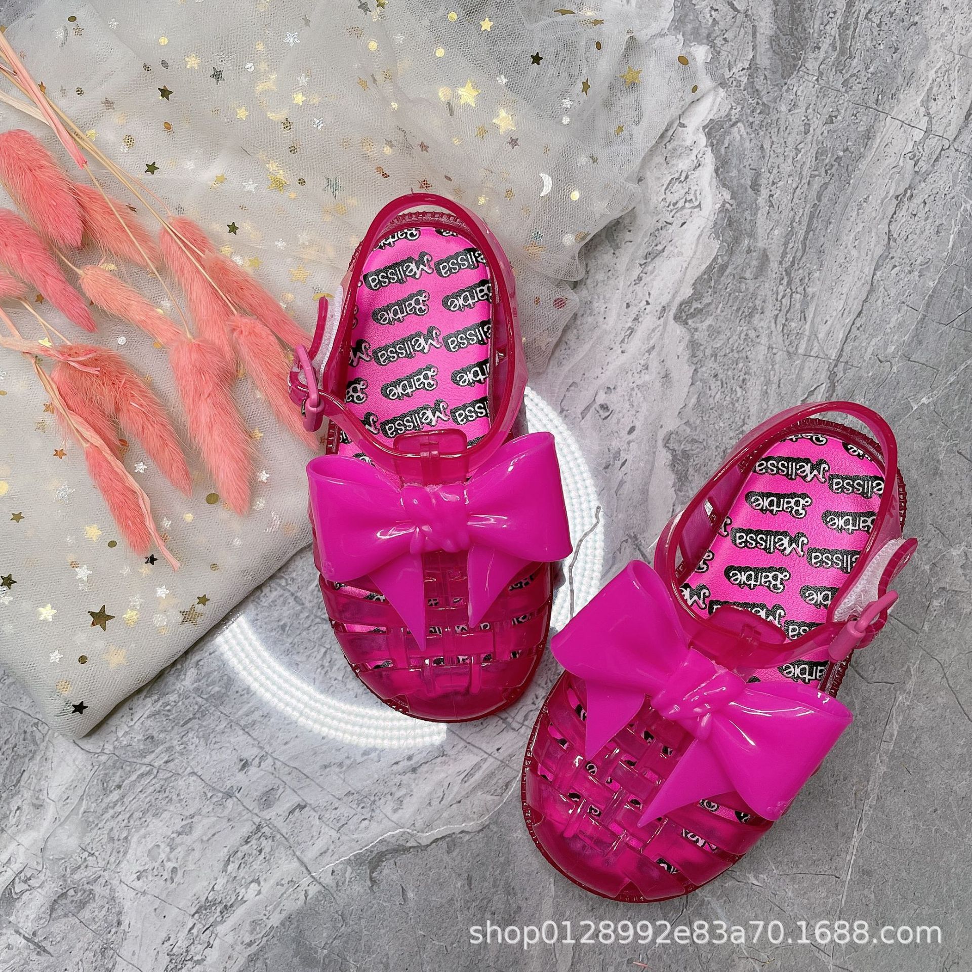 Me*Sha 여름 한국 스타일 어린 소녀 젤리 리본 로마 속이 빈 샌들(벨크로 포함)스토어 가기