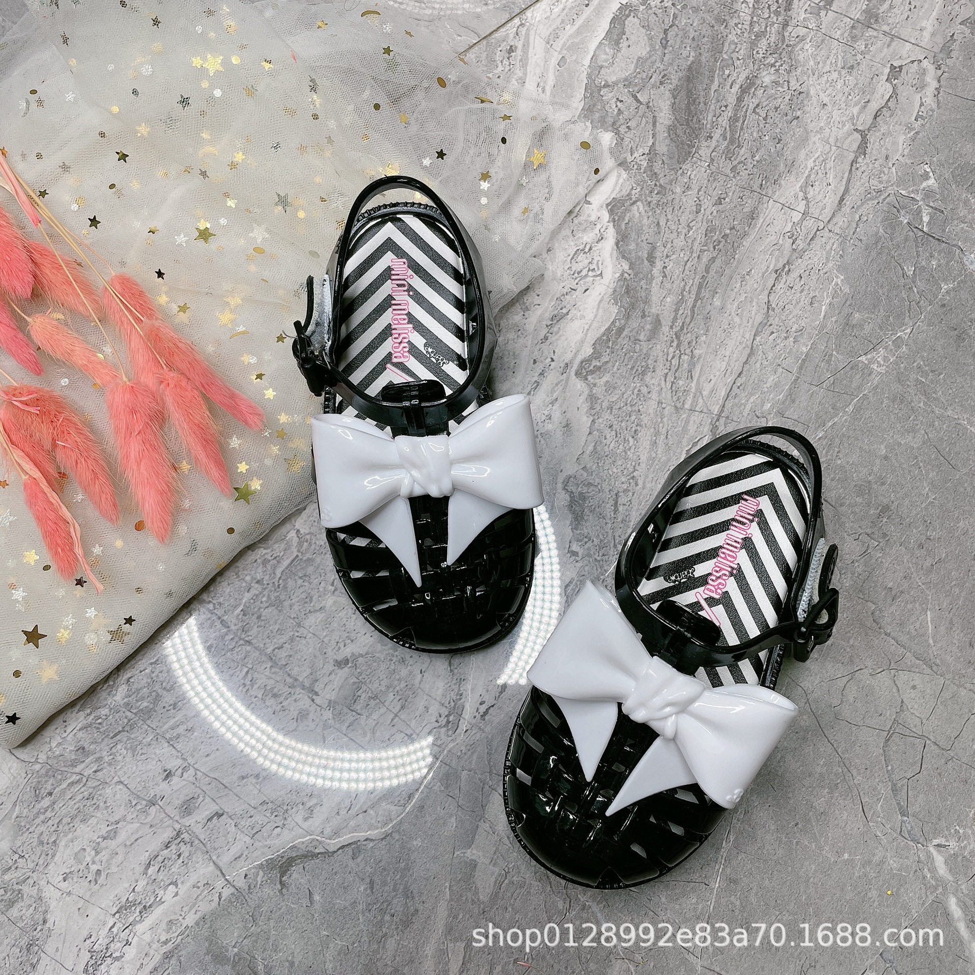 Me*Sha 여름 한국 스타일 어린 소녀 젤리 리본 로마 속이 빈 샌들(벨크로 포함)