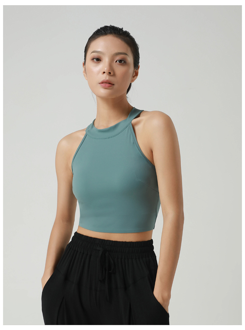 요가 착용 올인원 민소매 홀터넥 넥 댄스 겉옷 충격 방지 꽉 끼는 아름다운 백 탑 스포츠 브라 여성용 피트니스 조끼