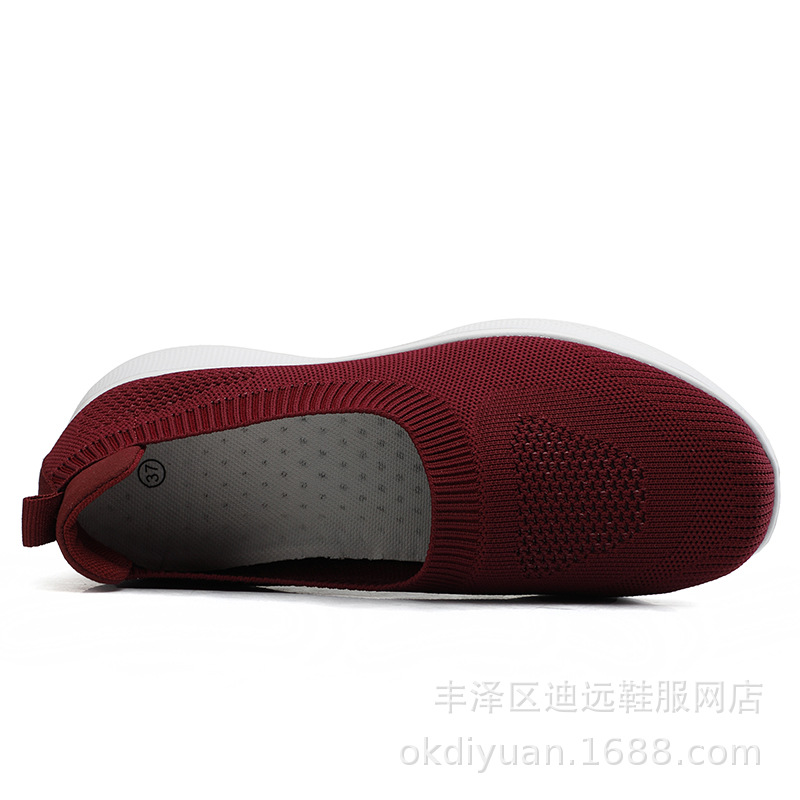 여름 비행 직조 오래 된 베이징 천 신발 여성 슬립온 블랙 작업 신발 플러스 사이즈 부드러운 단독 슬립온 엄마 캐주얼 신발스토어 가기