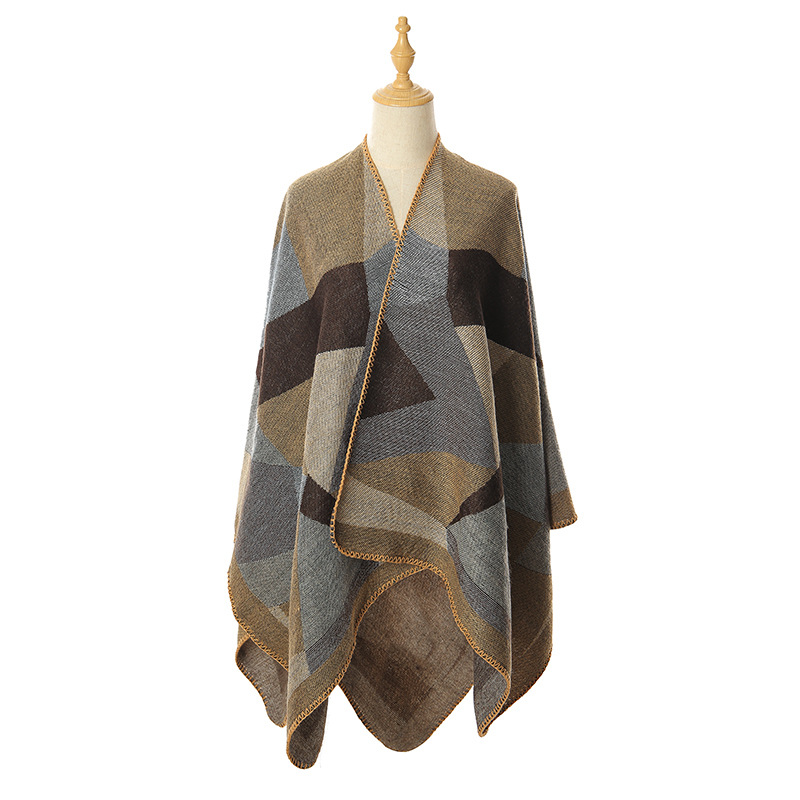 2023 국경 간 유럽과 미국 아마존 독립 역 따뜻한 두꺼운 숄 여성 아크릴 가을/겨울 아우터 케이프 공장스토어 가기