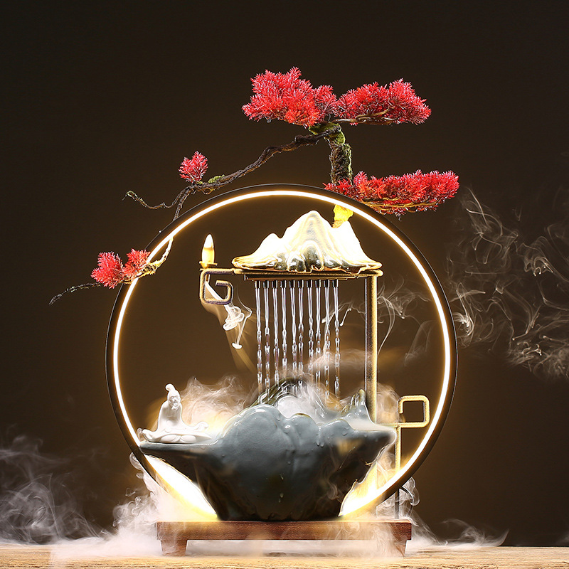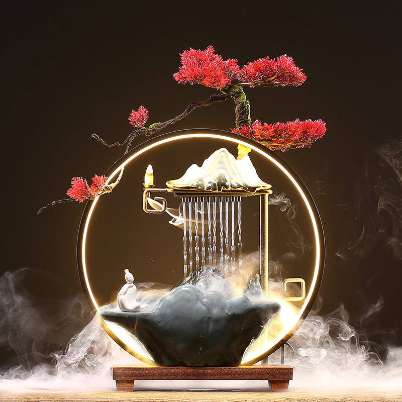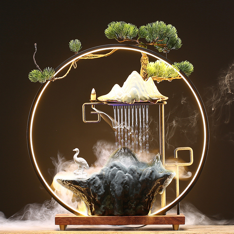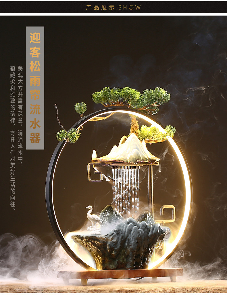 창조적 인 중국식 환영 소나무 분수 장식 풍수 돈 만들기 선 램프 원형 사무실 거실 오프닝 선물