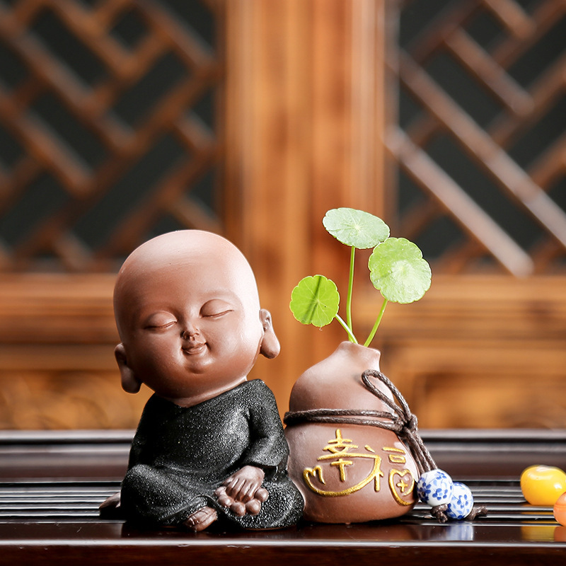 크리 에이 티브 부티크 귀여운 보라색 모래 작은 스님 차 애완 동물을 키울 수 있습니다 장식품 차 세트 장식 미니 꽃 세라믹 공예