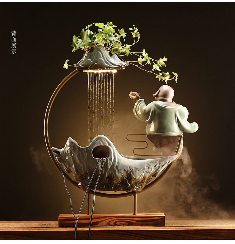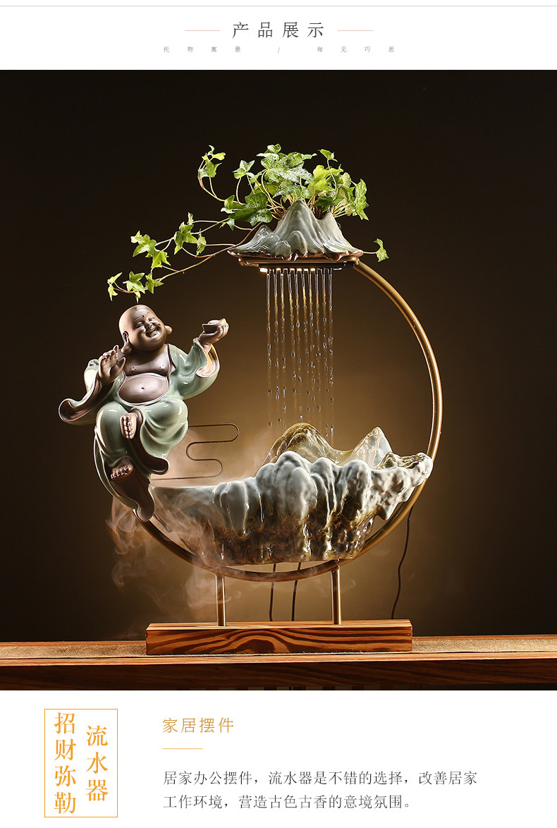 • 자오카이 미륵 흐르는 물 장식품 (녹색 아스파라거스 + 분무기 제공)