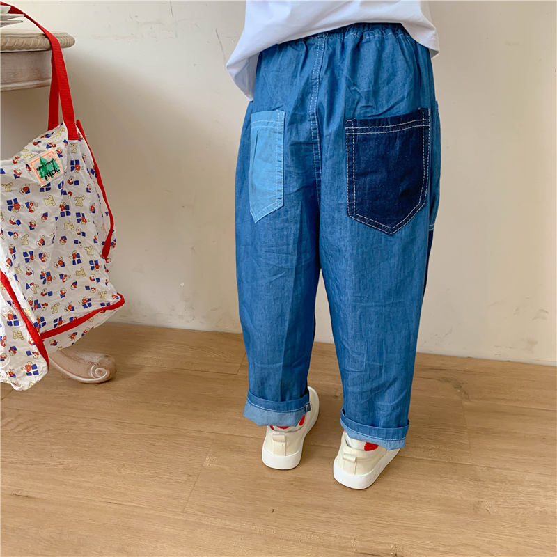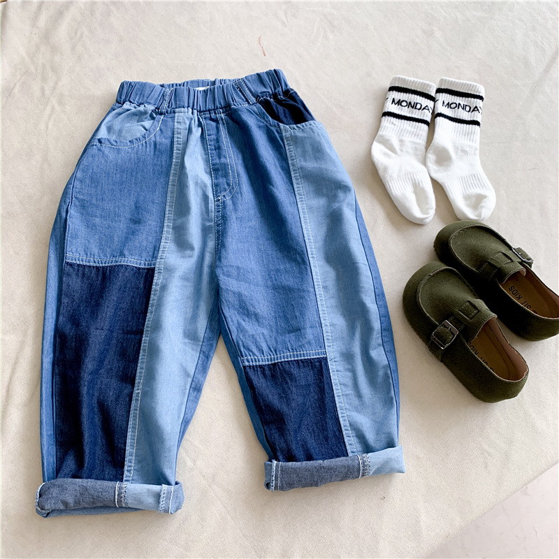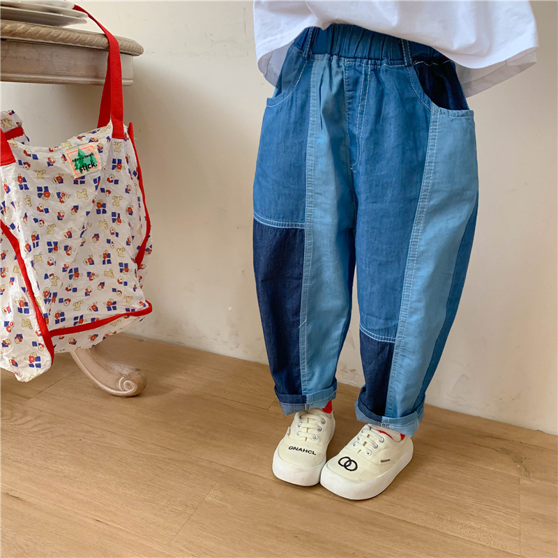 拼色牛仔裤