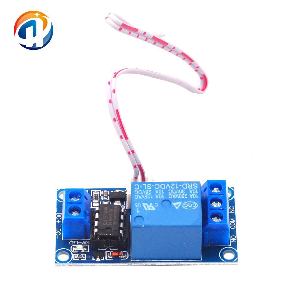 按触发按键,继电器吸合锁住,再按一次,继电器断开,也可以外接触发开关,和用低电平触发。