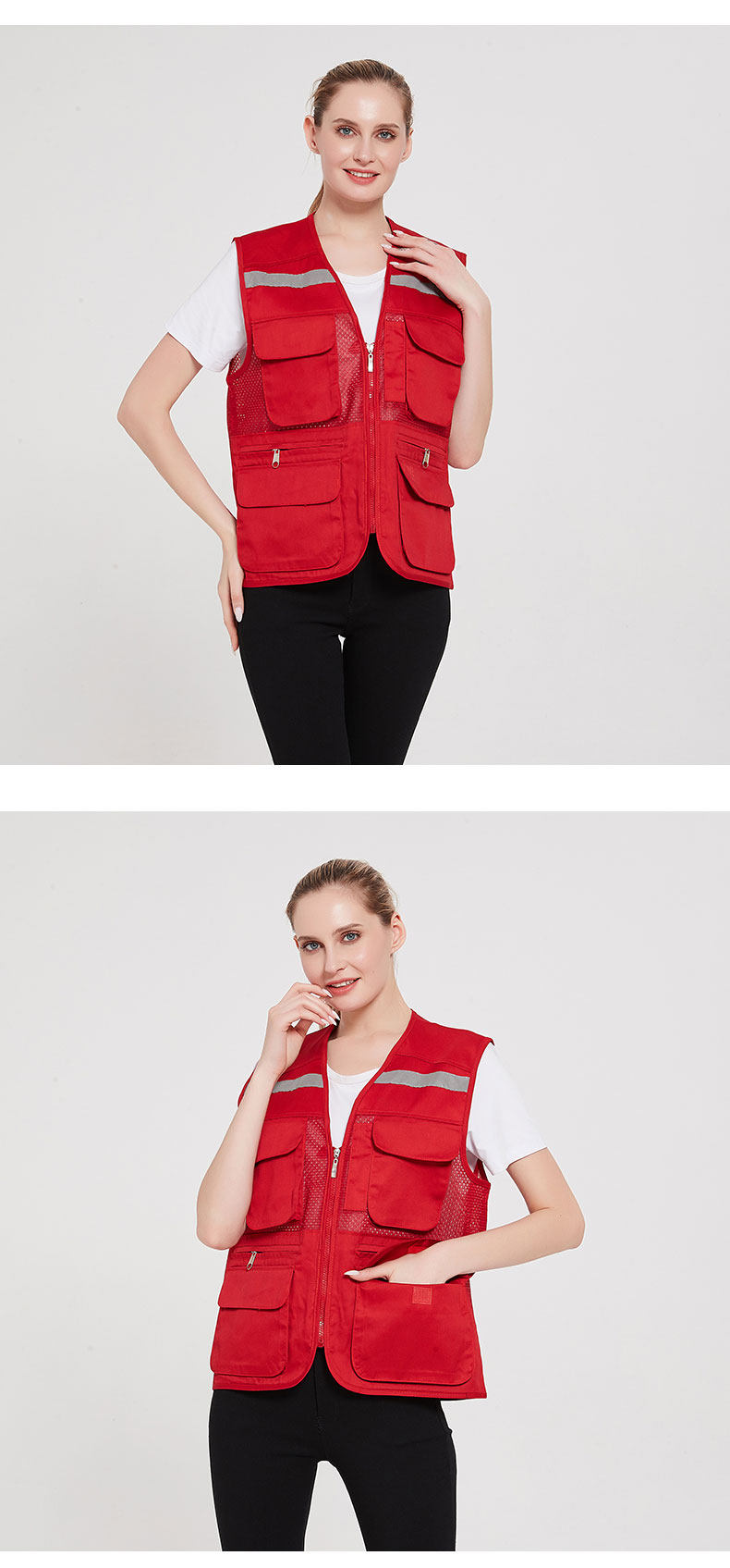 광고 셔츠 프로모션 조끼 맞춤형 인쇄 로고 반사 조끼 멀티 포켓 자원 봉사 운전 바지스토어 가기