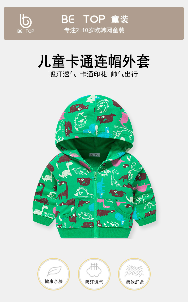 베이탑 아동복 2025 가을 겨울 신상품 어린이 전면 프린트 공룡 만화 재킷 남아용 지퍼 셔츠 니트 스웨트셔츠스토어 가기