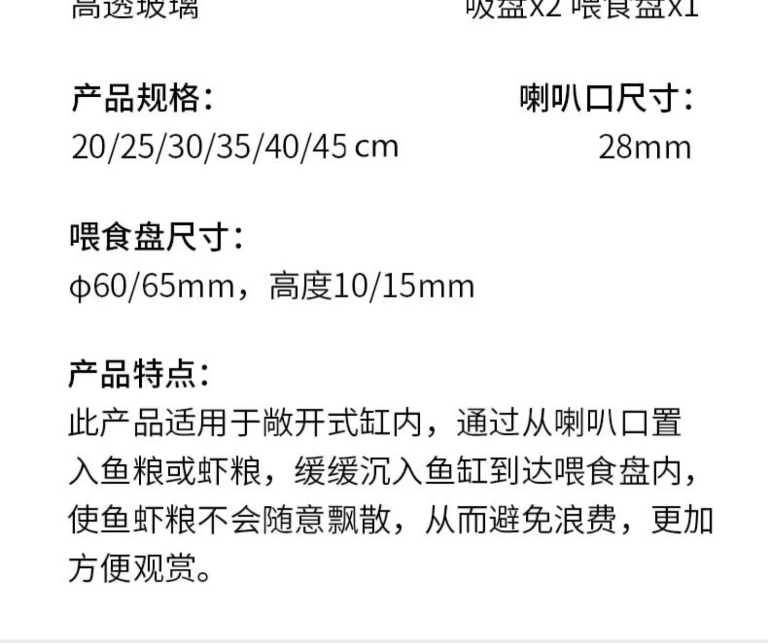 어항용 고투명 유리 먹이관, 관상용 새우 및 소형 어류 먹이통, 정확한 먹이주기, 물고기 먹이 흩날림 방지, 물고기 먹이 공구스토어 가기