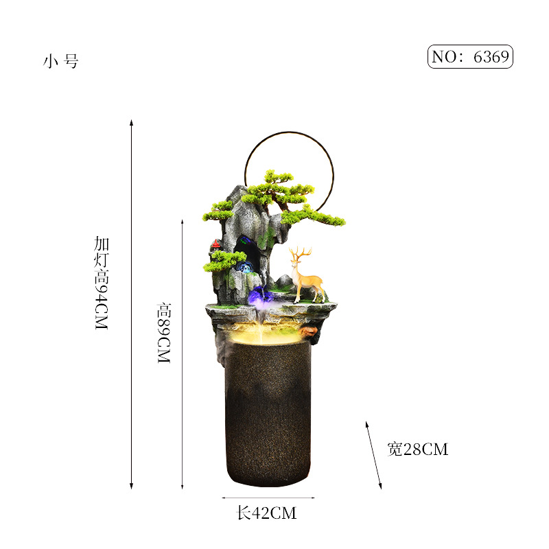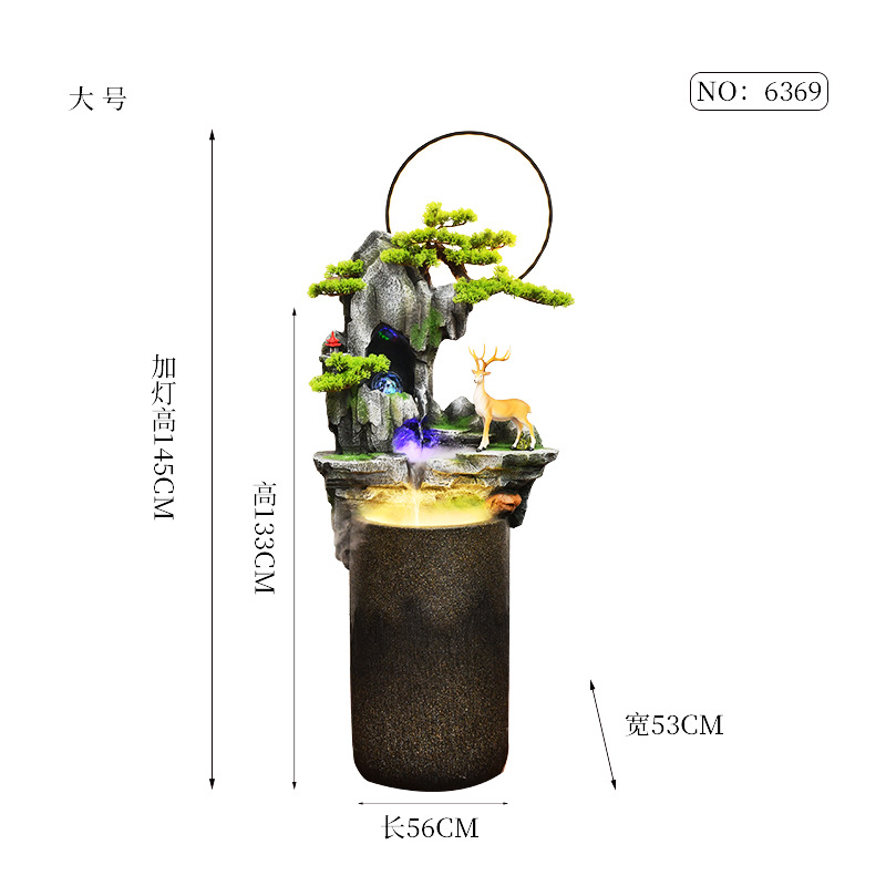 Fulu 이중 전체 순환 흐름 물 장치 가습 분수 장식품 중국식 시간 실행 물고기 연못 안뜰 실내 물 커튼 벽스토어 가기
